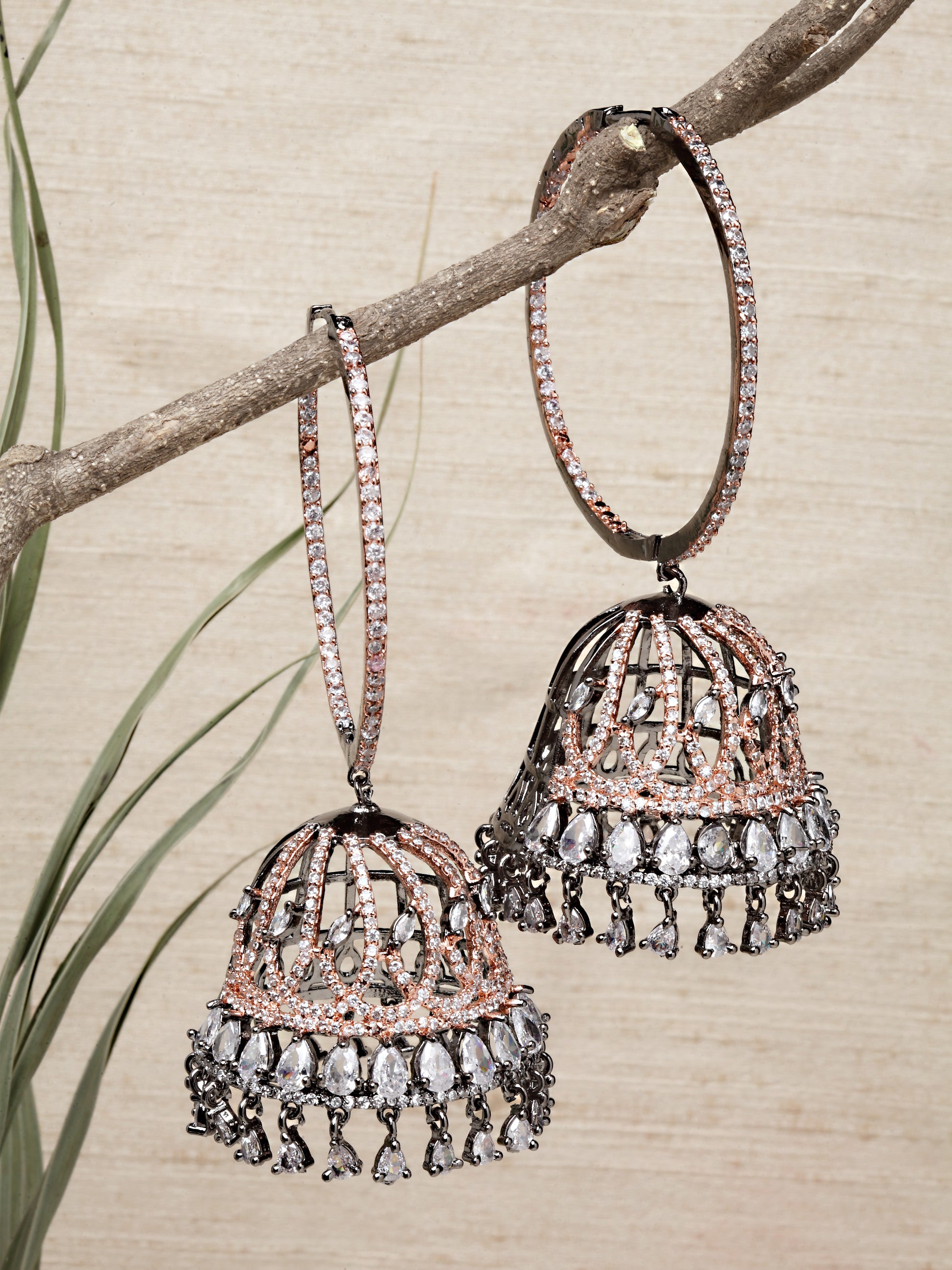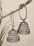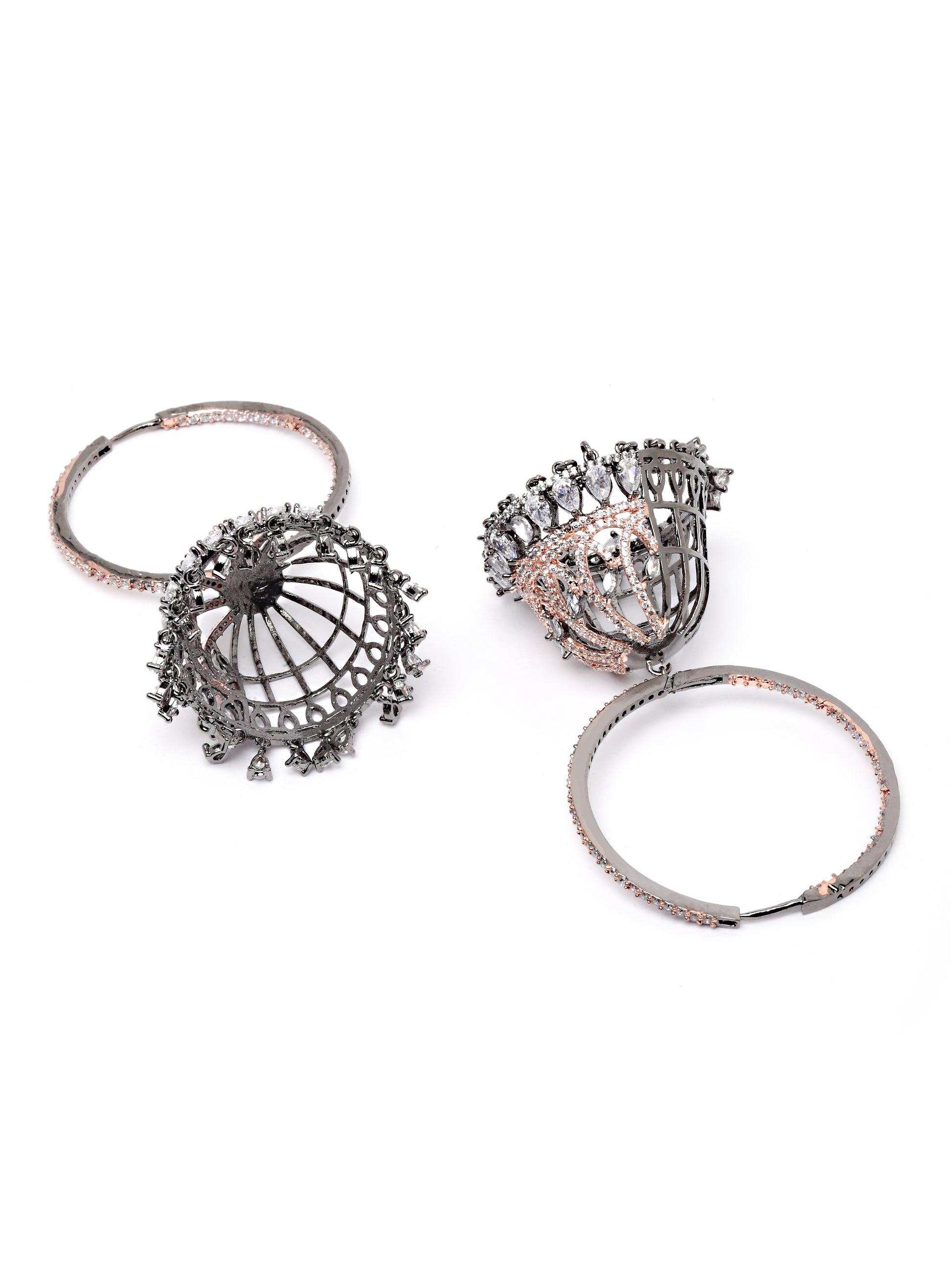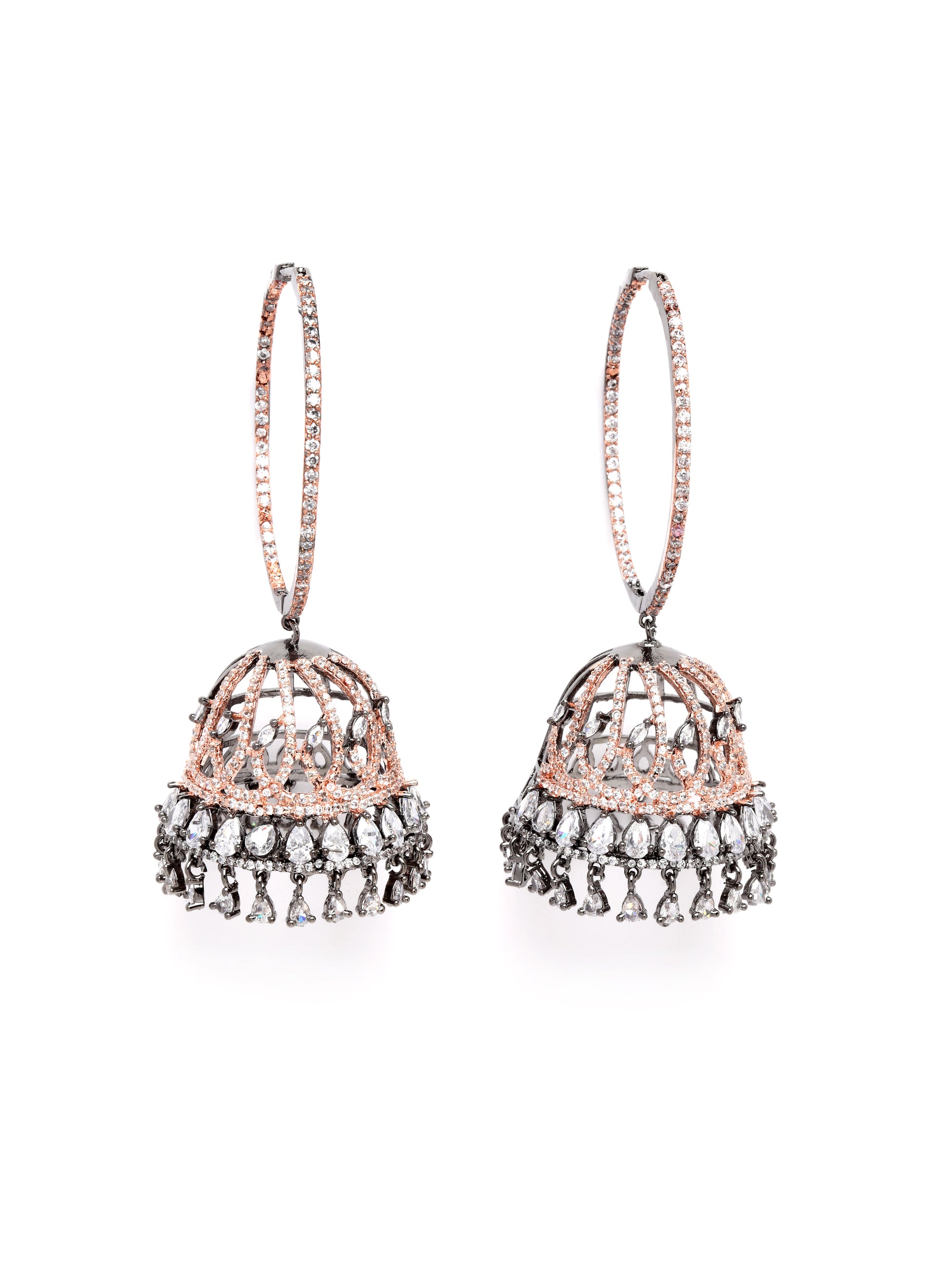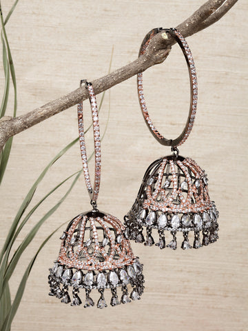 Karatcart Rose Gold Plated Black Finished Cubic Zirconia Studded Jhumki Earrings for Women