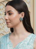 Karatcart Light Green American Diamond Studded Floral Stud Earrings for Women