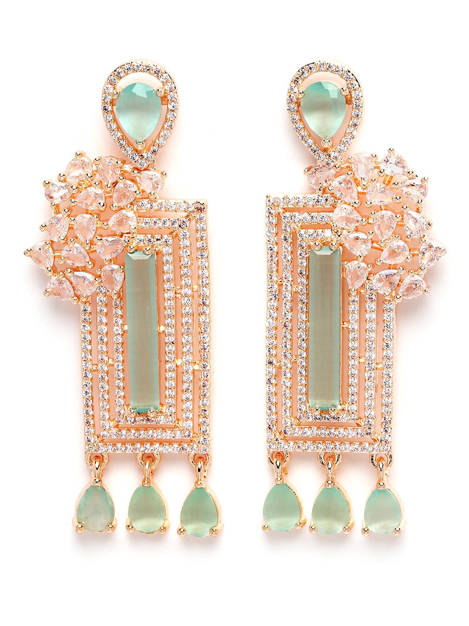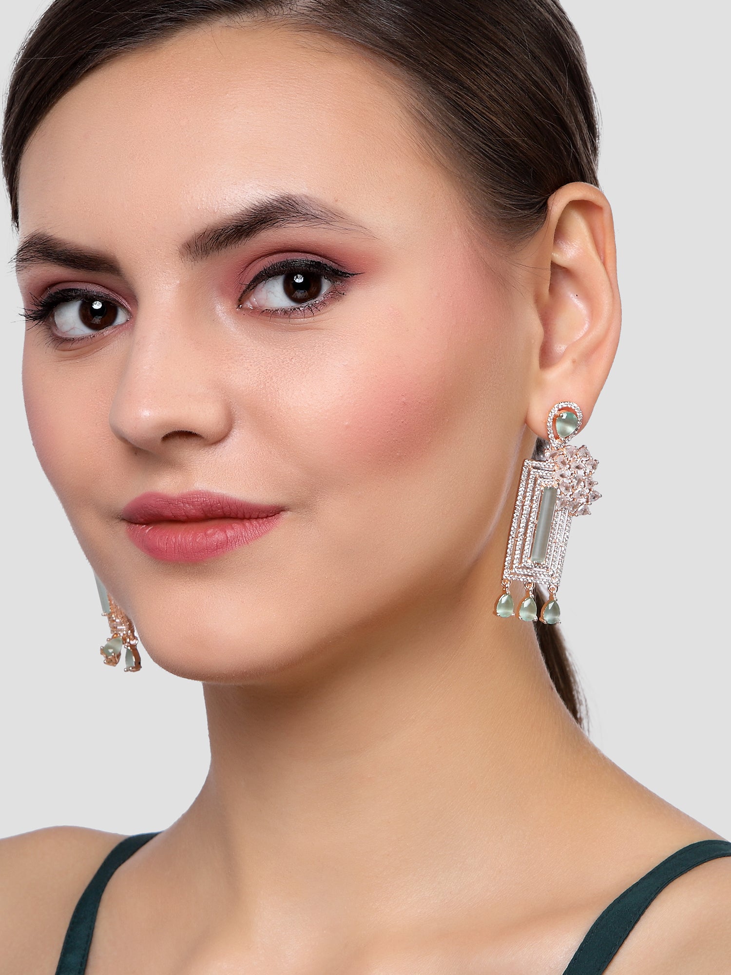 Karatcart Rose Gold Plated Lime Green Cubic Zirconia Studded Drop Earrings for Women