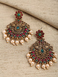 Karatcart Antique Gold Plated Red and Green Kundan Studded Dangler Earrings for Women