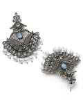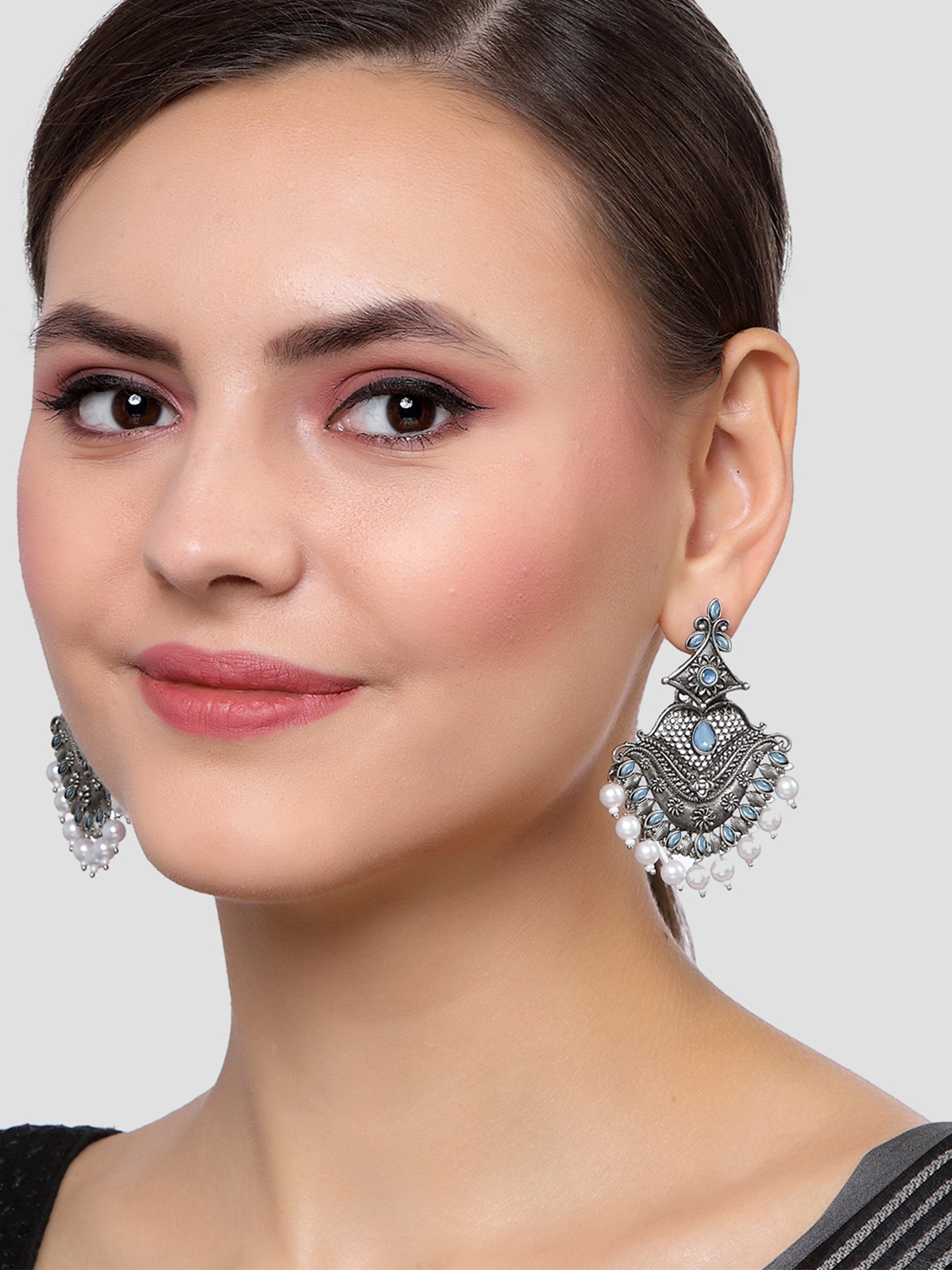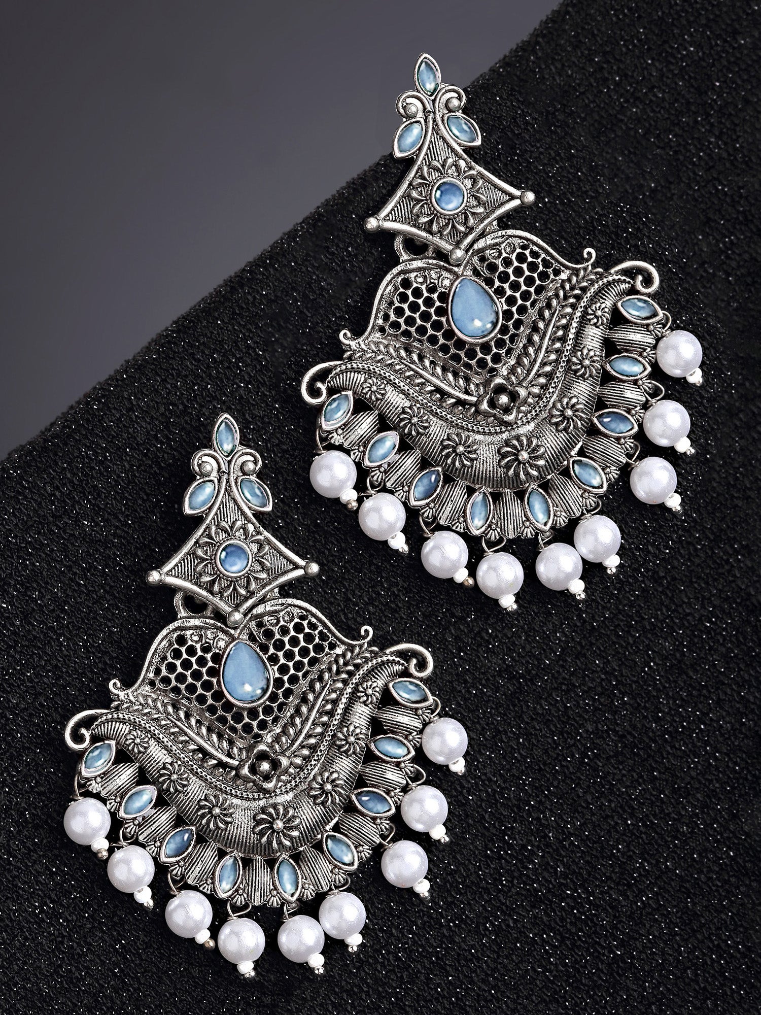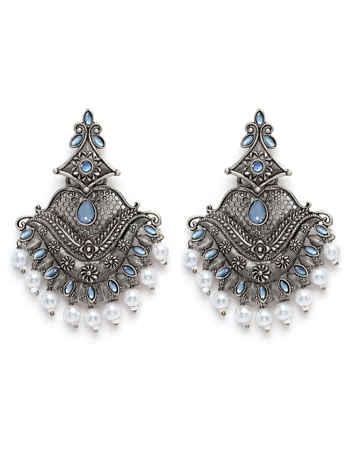 Karatcart Antique Silver Plated Blue Monalisa Stone Studded Dangler Earrings for Women