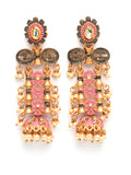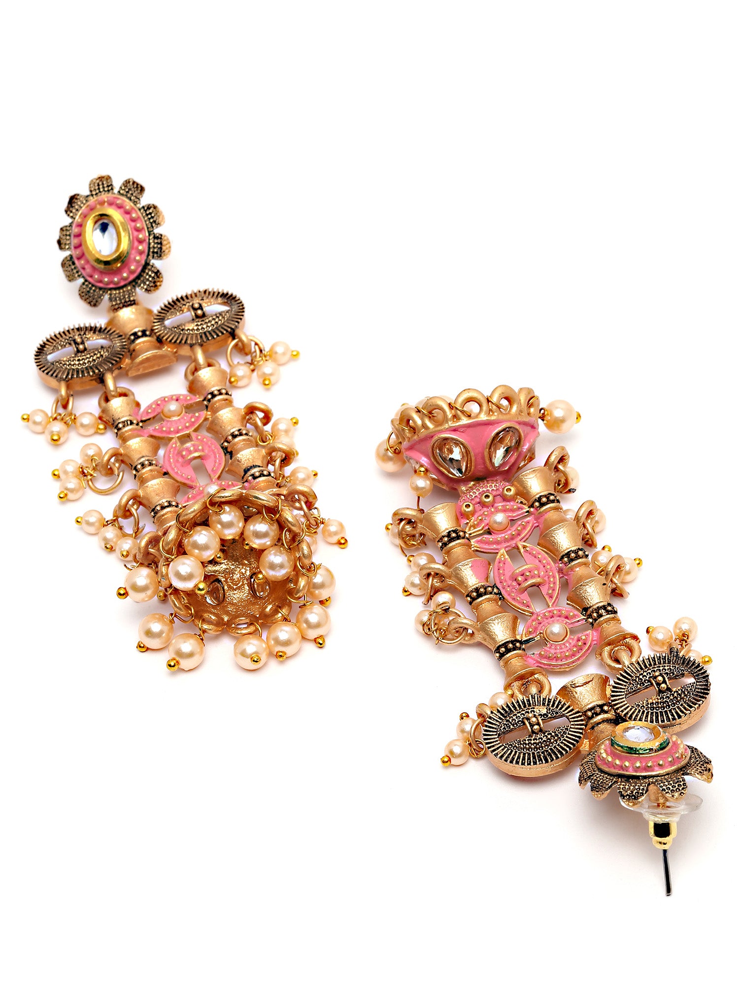 Karatcart Antique Gold Plated Pink Kundan Drop Earrings for Women