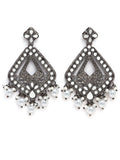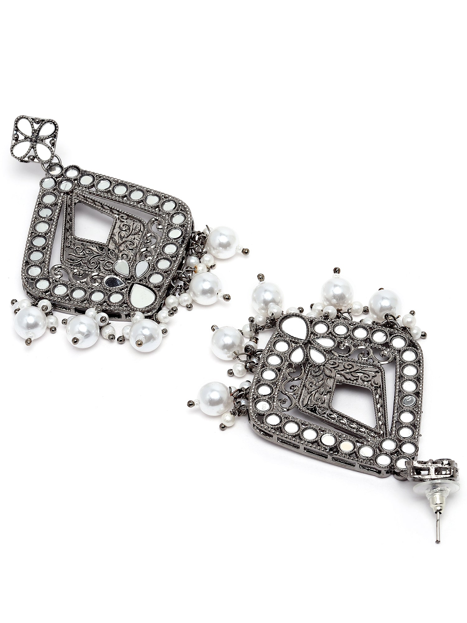 Karatcart Black Silver Plated Mirror Studded Diamond Shape Dangler Earrings for Women