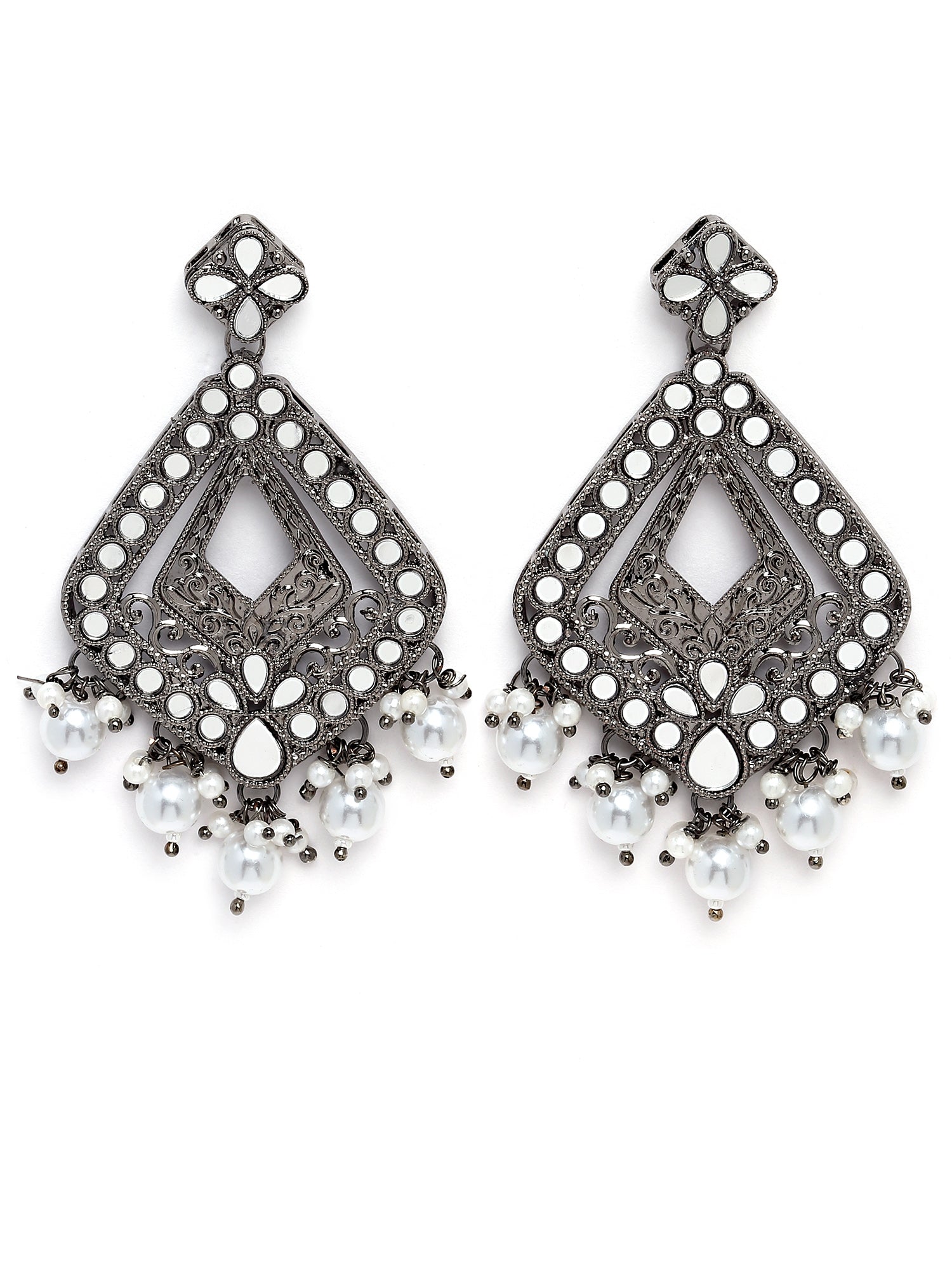 - This is a Black Earrings by Brand Karatcart which has Mirror stones.This is Black Silver Plated. We at KARATCART understand your desire to look the best on any day & we thrive in making any day an occasion. Every individual at Karatcart carries a passion for jewellery and it reflects in our beautiful designs as well as in our breathtaking craftsmanship. We create unique jewellery so you can make heads turn..