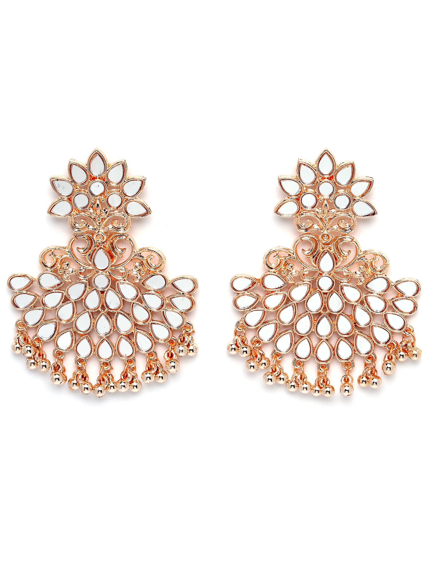 Karatcart Rose Gold Plated Mirror Studded Dangler Earrings for Women