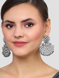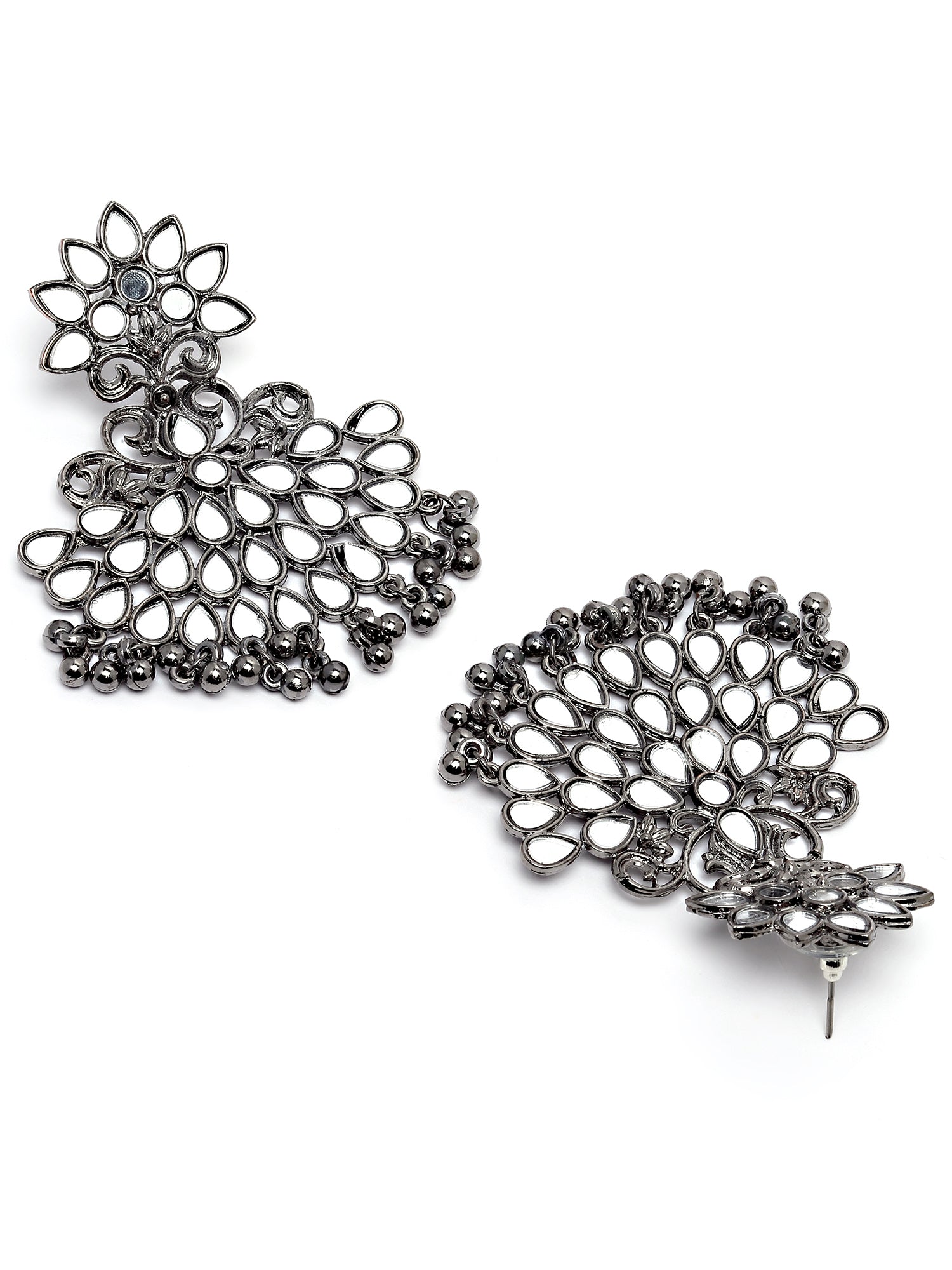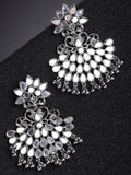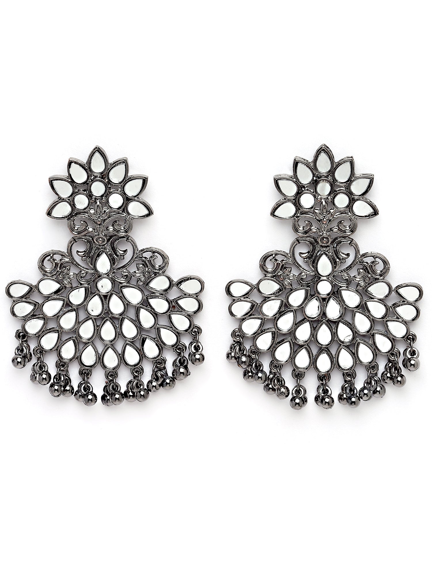 Karatcart Black Silver Plated Mirror Studded Dangler Earrings for Women
