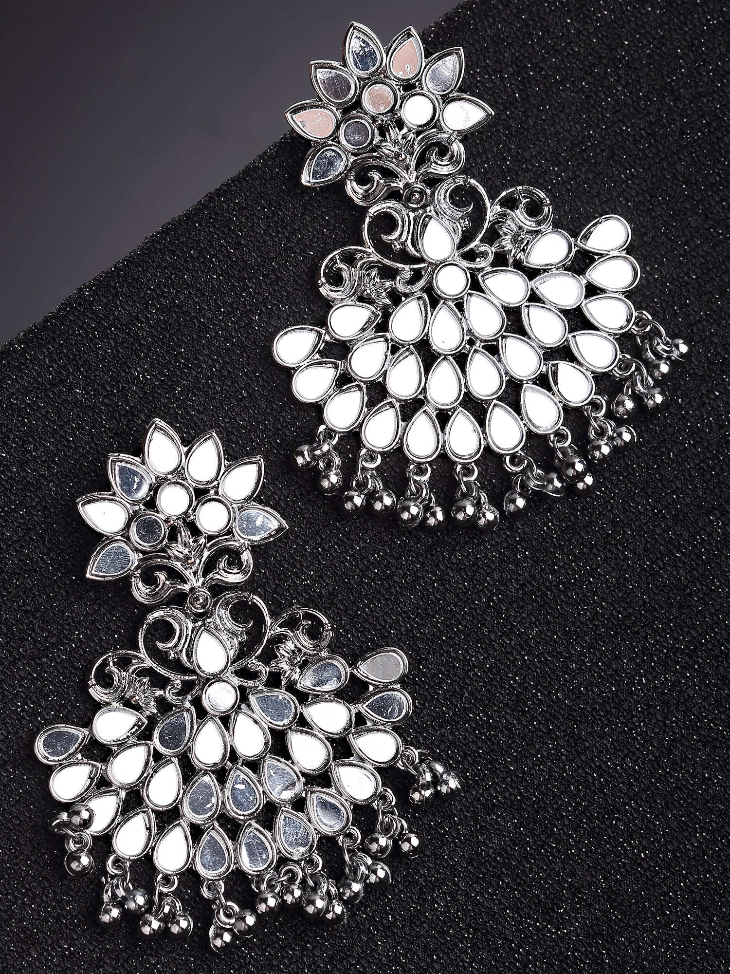 - This is a Black Earrings by Brand Karatcart which has Mirror stones.This is Black Silver Plated. We at KARATCART understand your desire to look the best on any day & we thrive in making any day an occasion. Every individual at Karatcart carries a passion for jewellery and it reflects in our beautiful designs as well as in our breathtaking craftsmanship. We create unique jewellery so you can make heads turn..