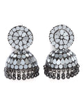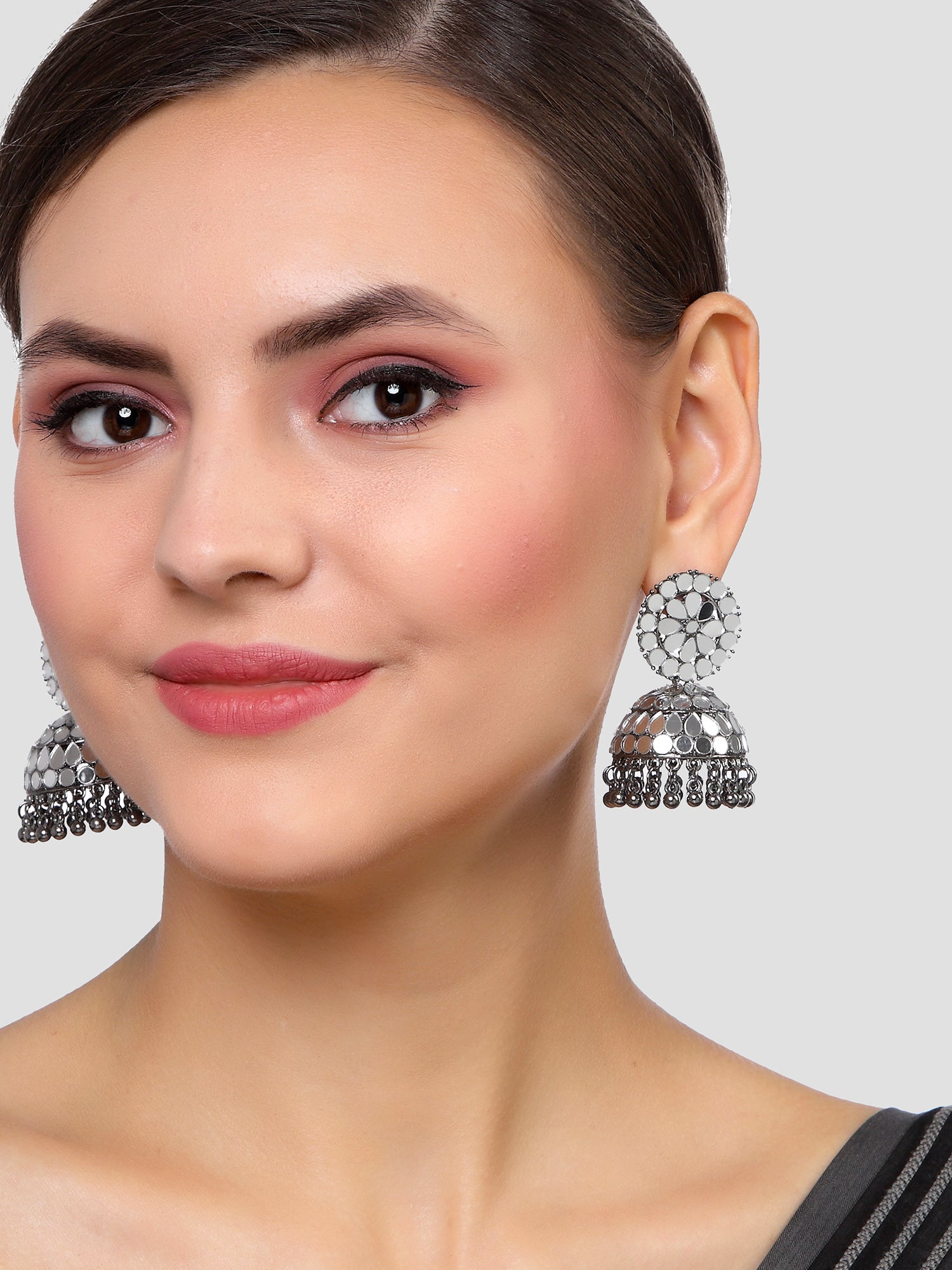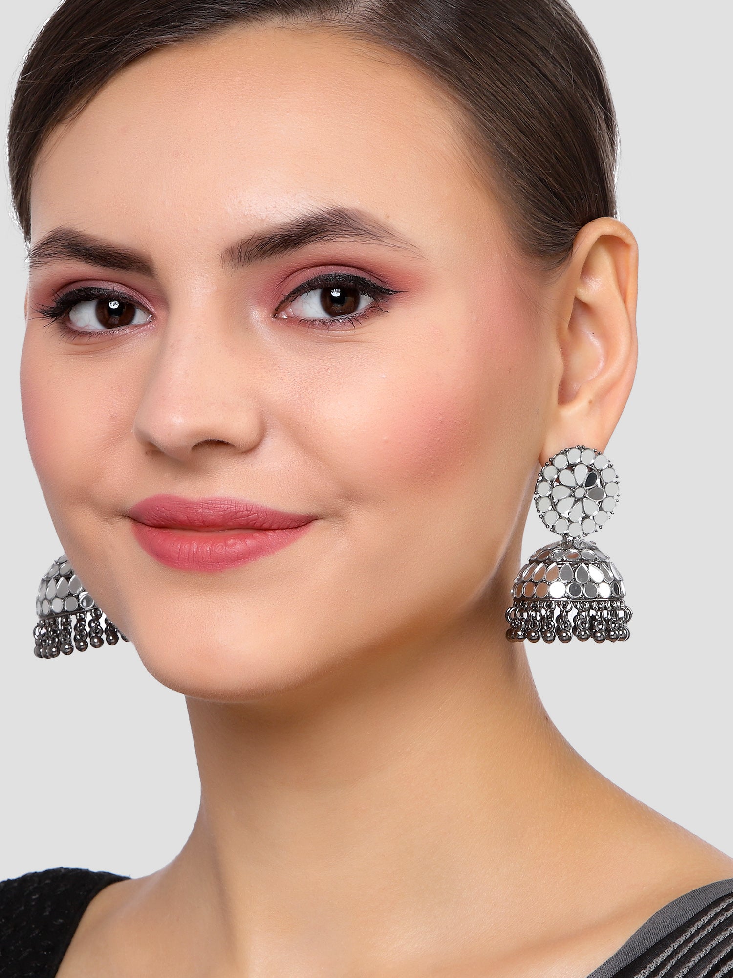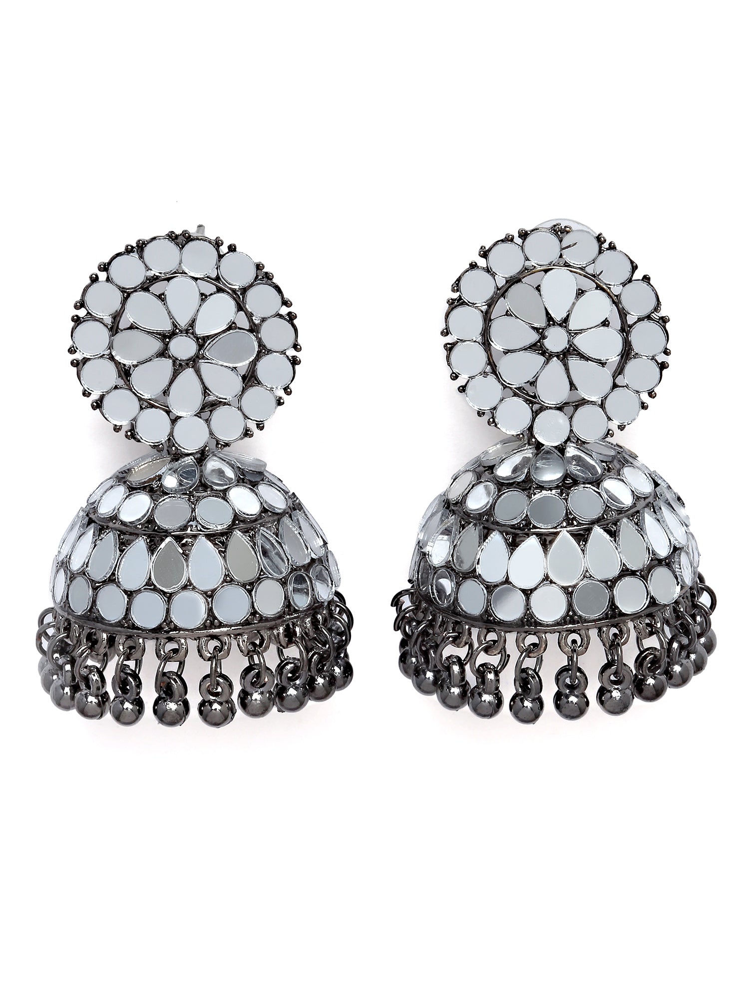 Karatcart Black Silver Plated Mirror Studded Jhumki Earrings for Women