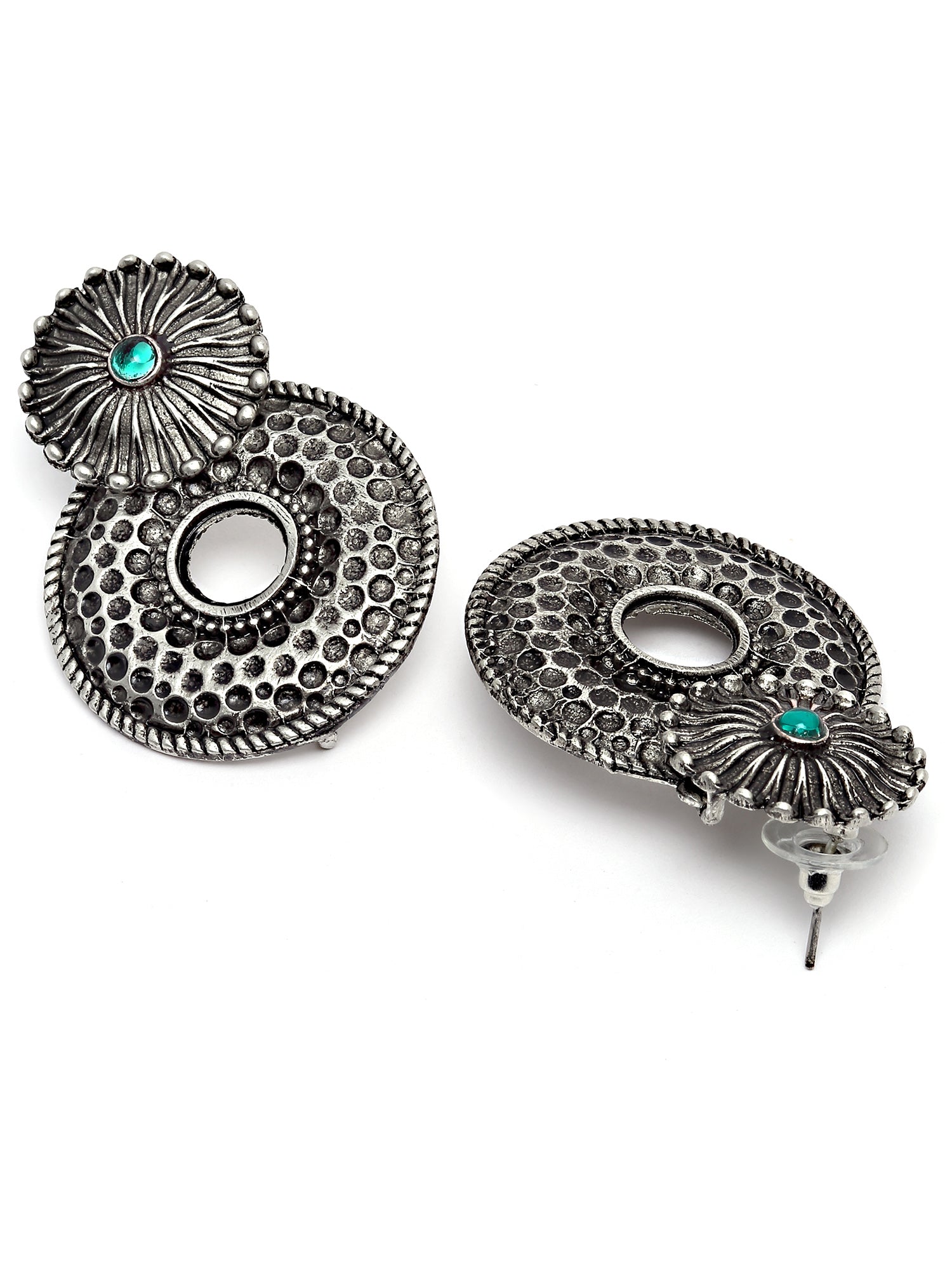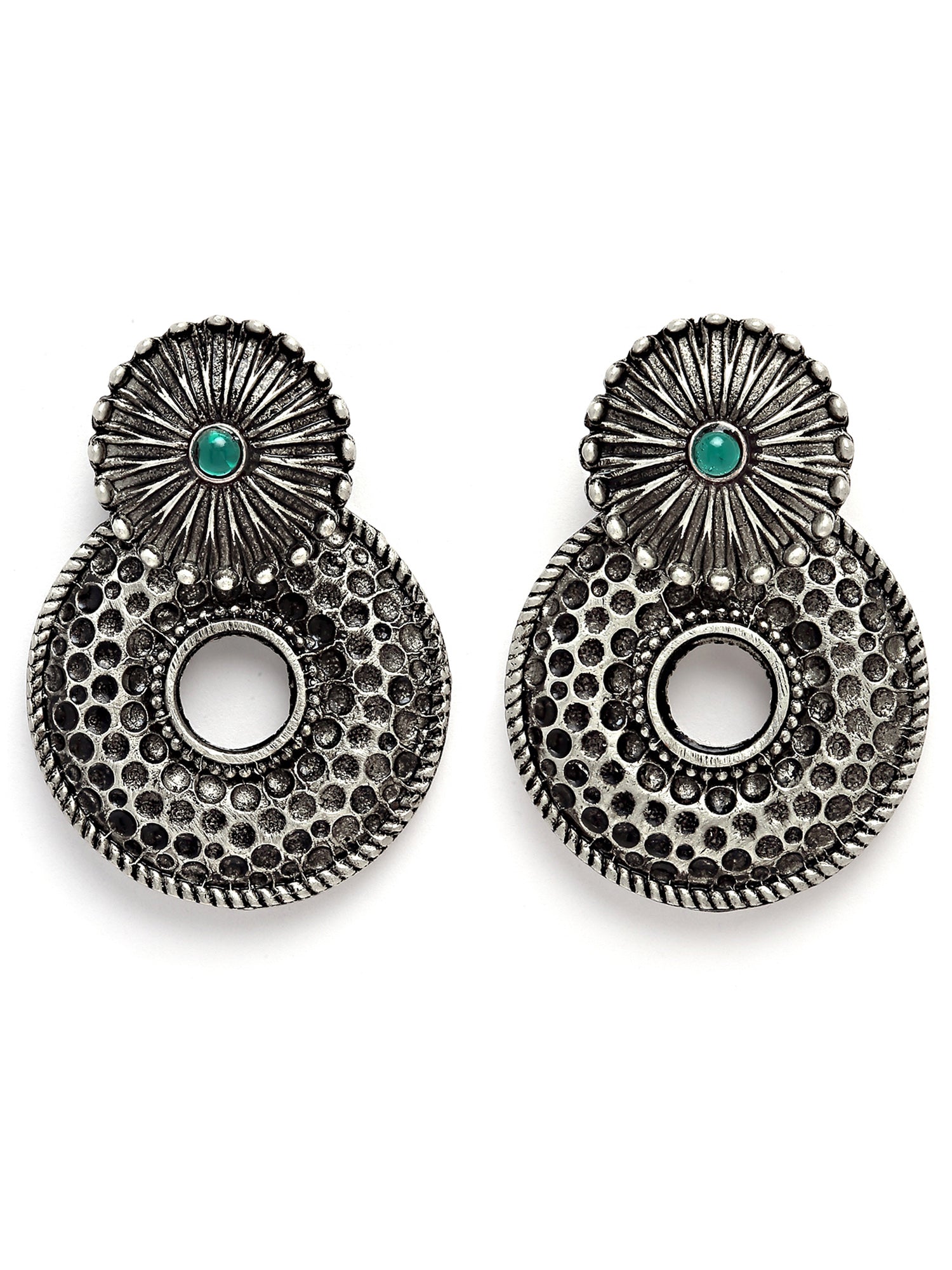 Karatcart Oxidised Silver Textured Dangler Earrings for Women