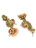 Karatcart Gold Plated Peacock Shape Light Green Kundan Dangler Jhumki Earrings for Women