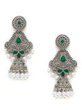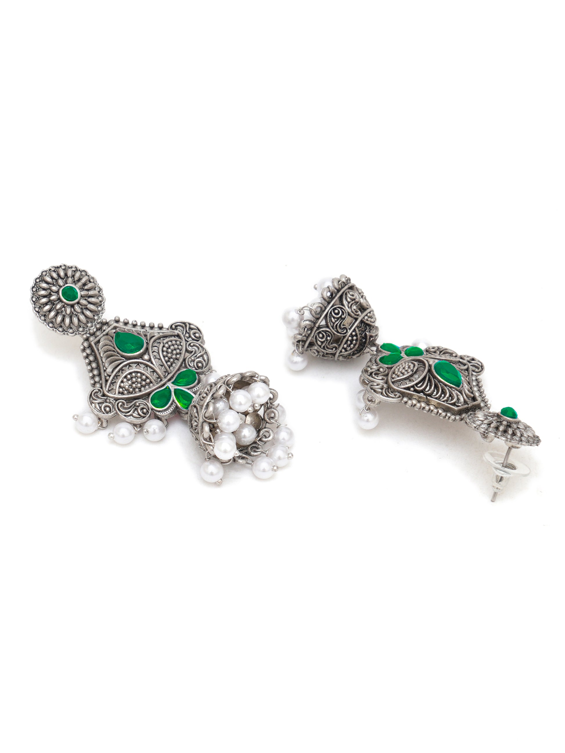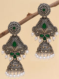 Karatcart Oxidised Silver Handcrafted Green Dangler Jhumki Earrings for Women