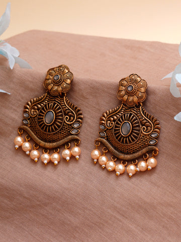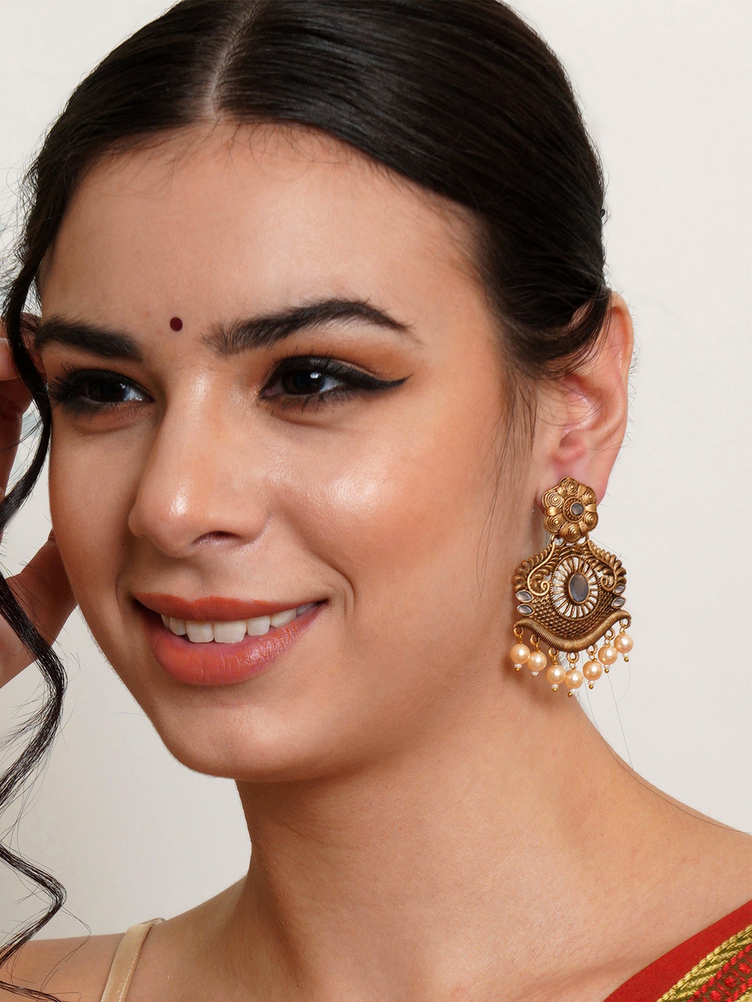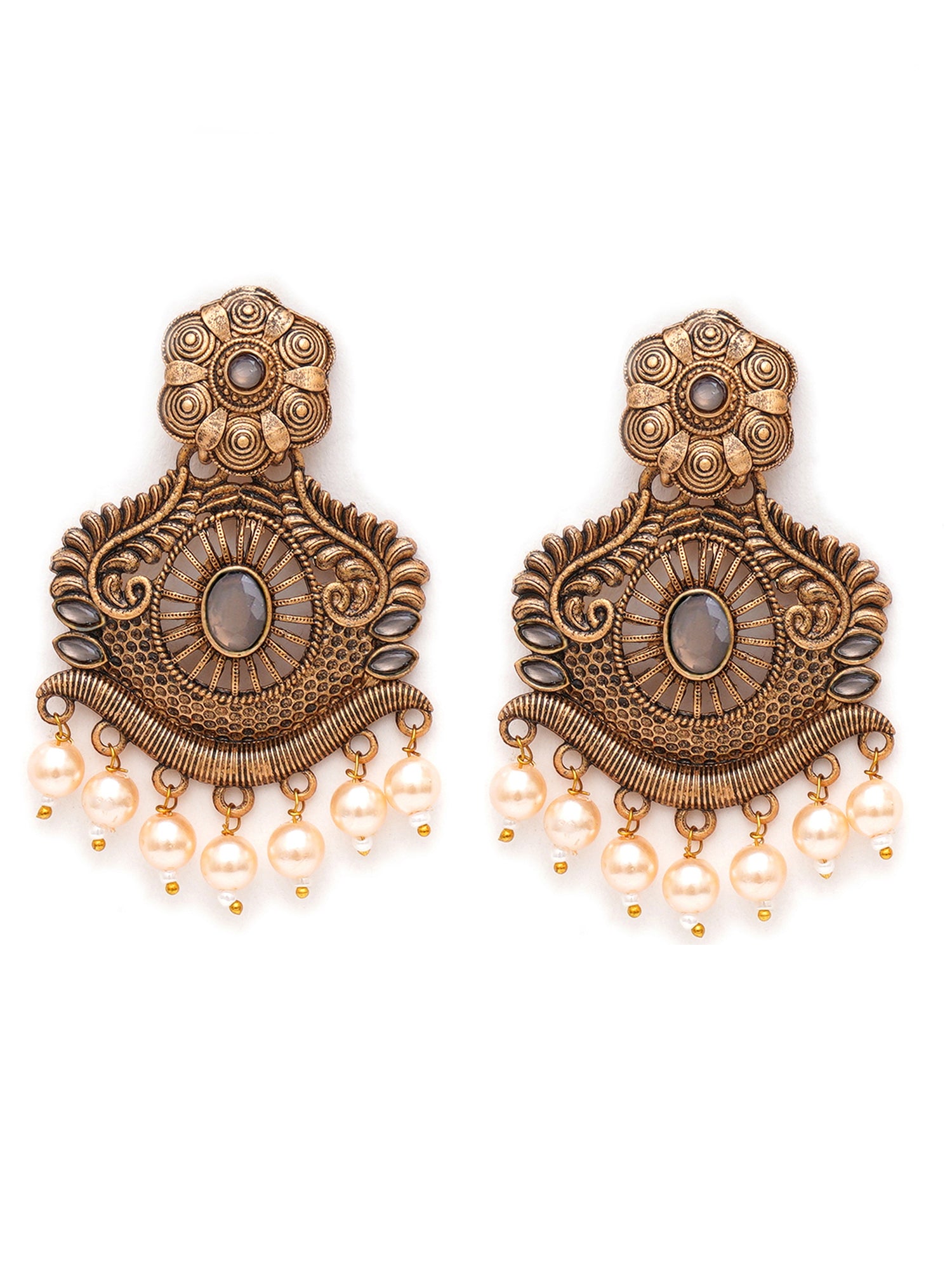 Karatcart Gold Plated Handcrafted Grey Stone Studded Dangler Earrings for Women