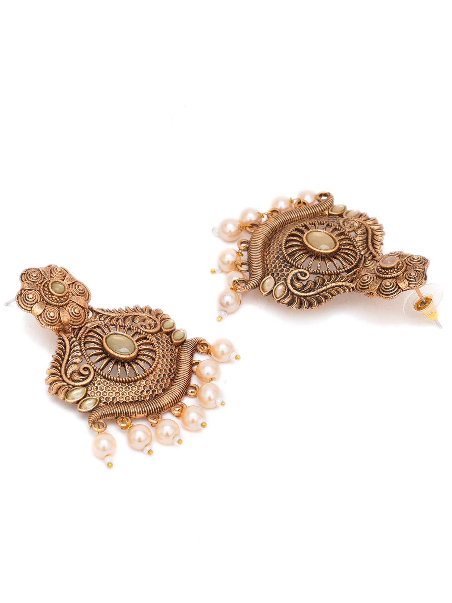 Karatcart Gold Plated Handcrafted Golden Stone Studded Dangler Earrings for Women
