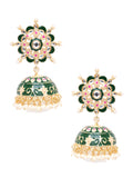 Karatcart Gold Plated Floral Design Green Meena and Pearl Jhumki Earrings for Women