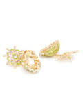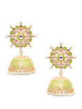 Karatcart Gold Plated Floral Design Light Green Meena and Pearl Jhumki Earrings for Women