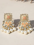 Karatcart Gold Plated Peach and Pearl Studded Kundan Dangler Earrings for Women