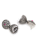 Karatcart Oxidised Silver Round Jhumki Earrings for Women