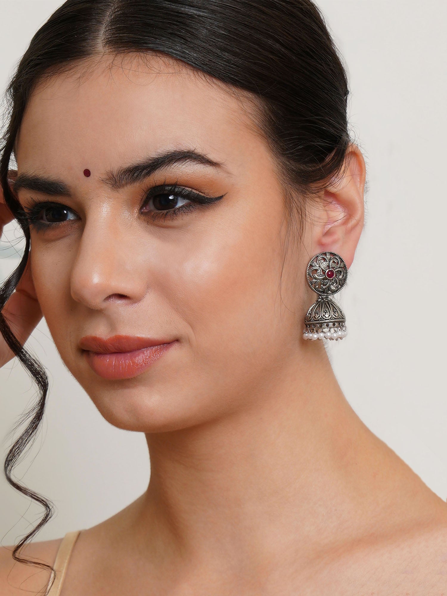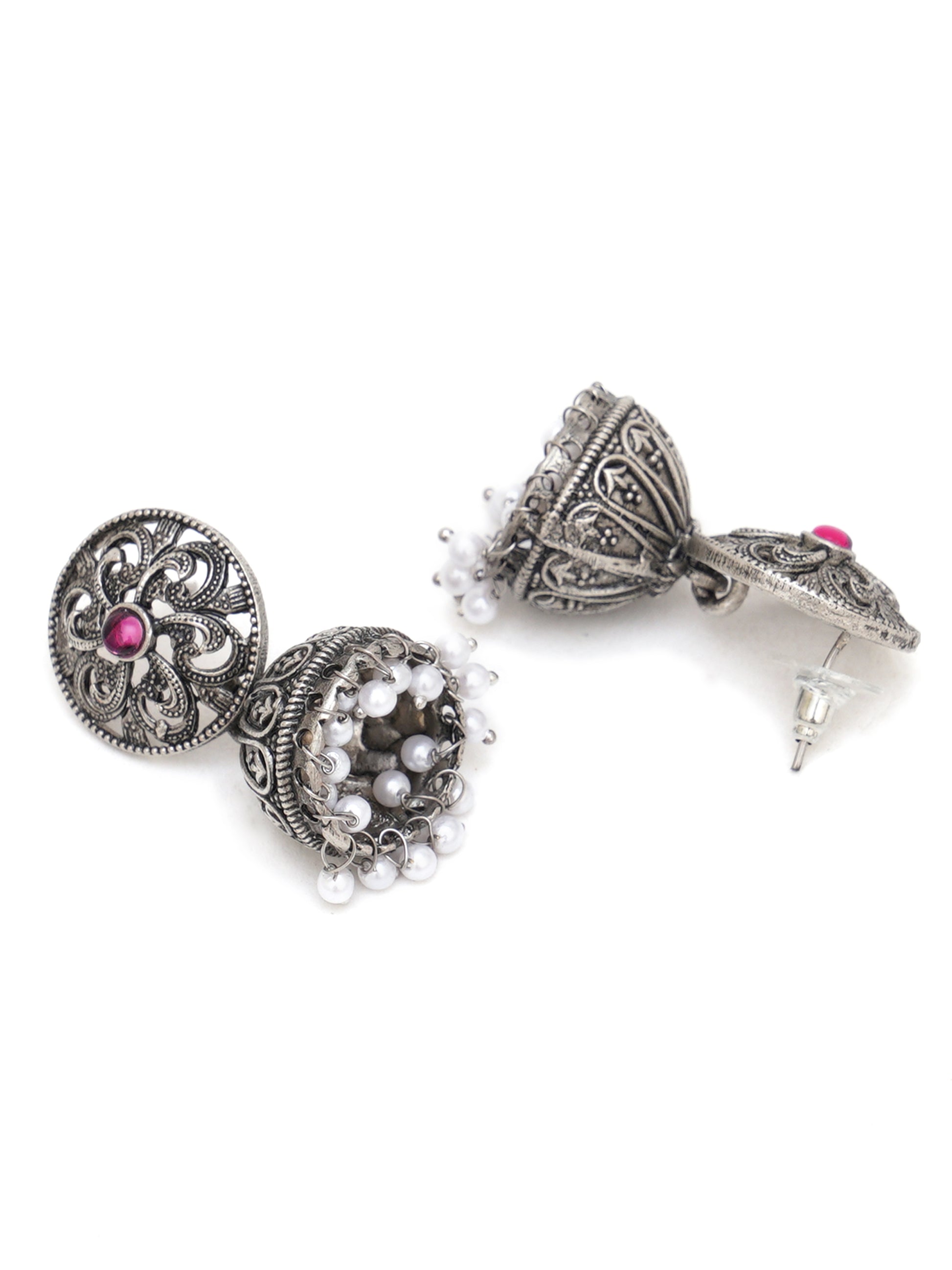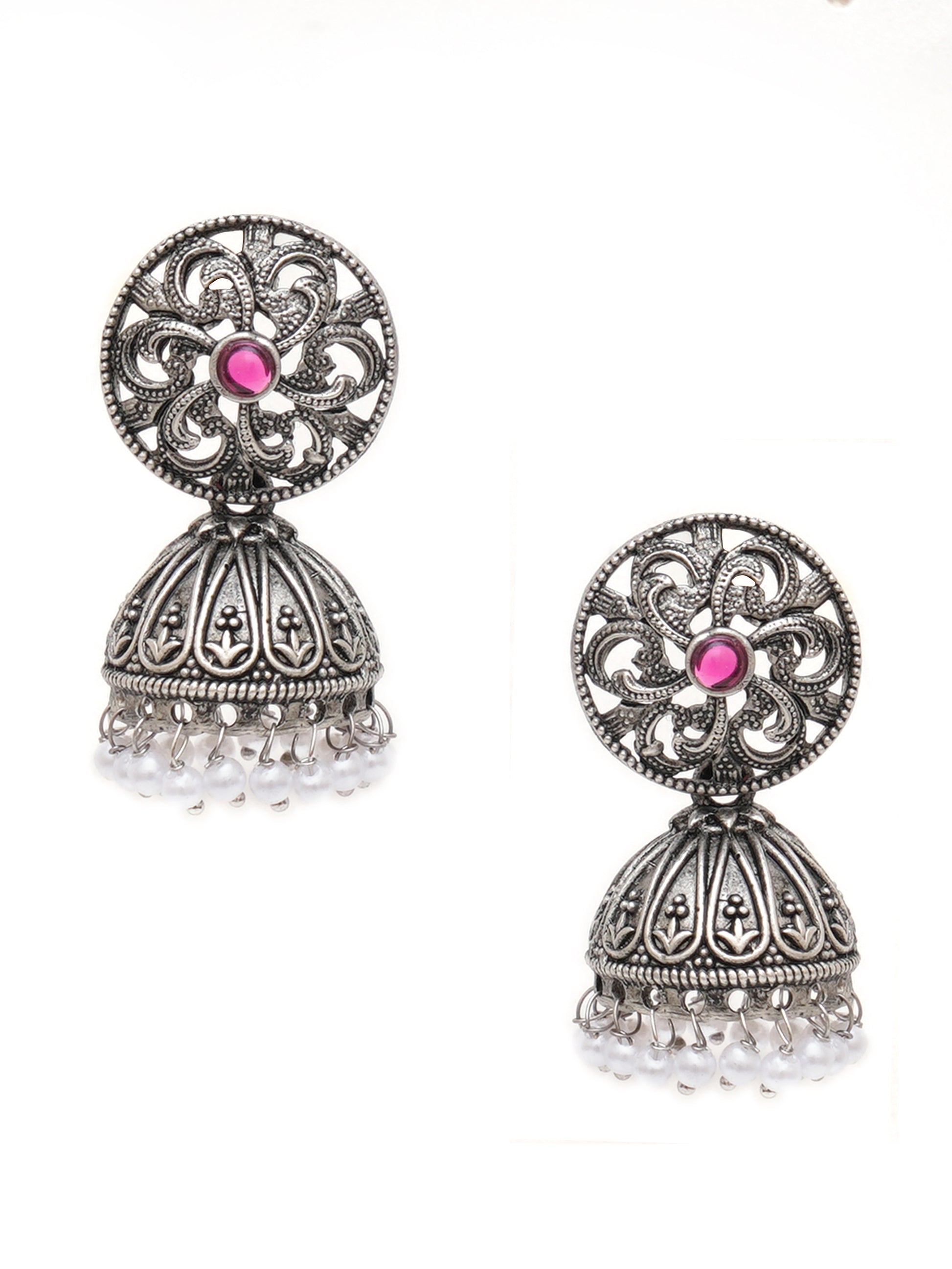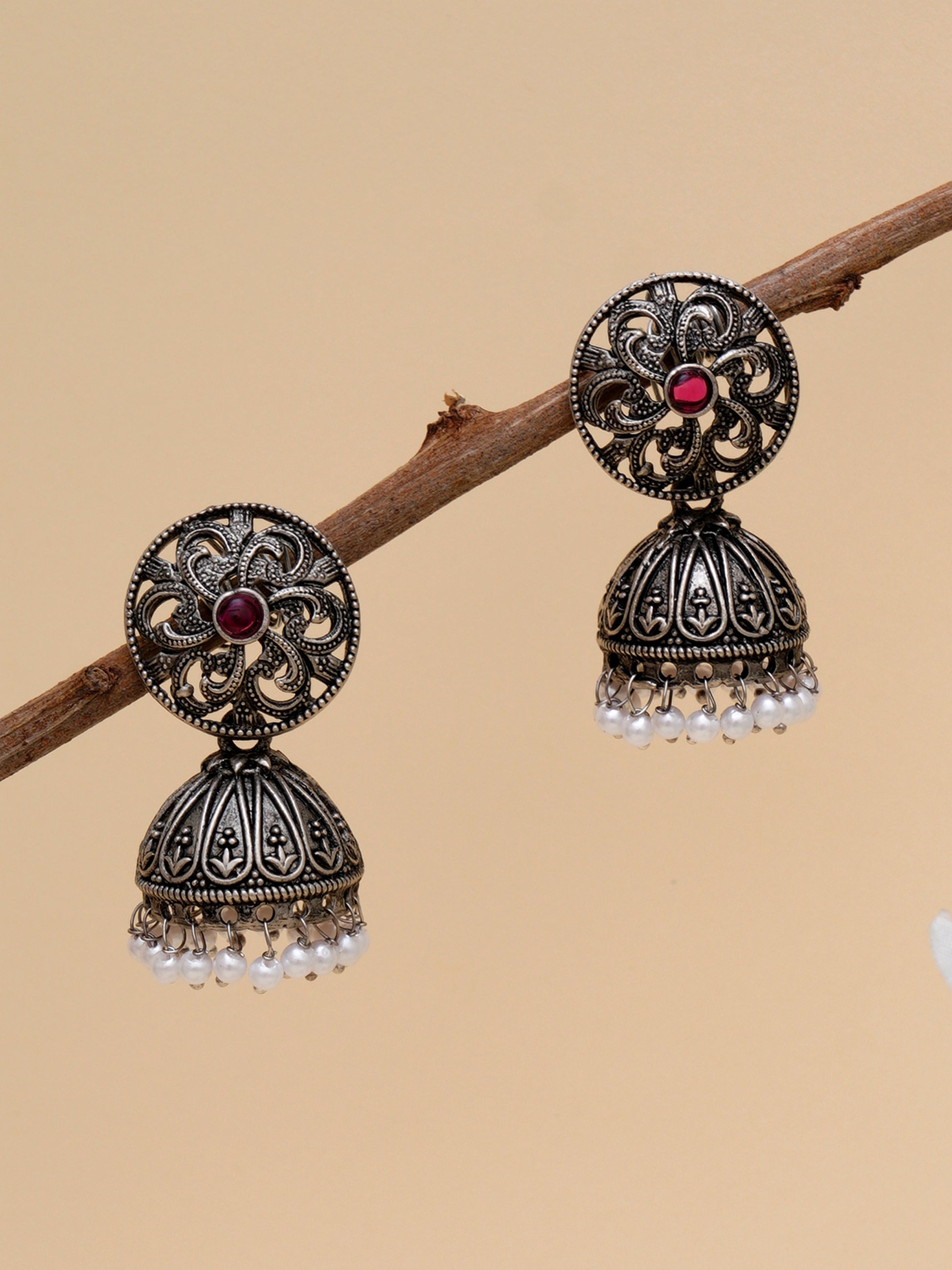 Karatcart Oxidised Silver Round Jhumki Earrings for Women. Our products are designed with high-quality material and these products are enhanced with plating that are skin-friendly & with love to reach your heart.