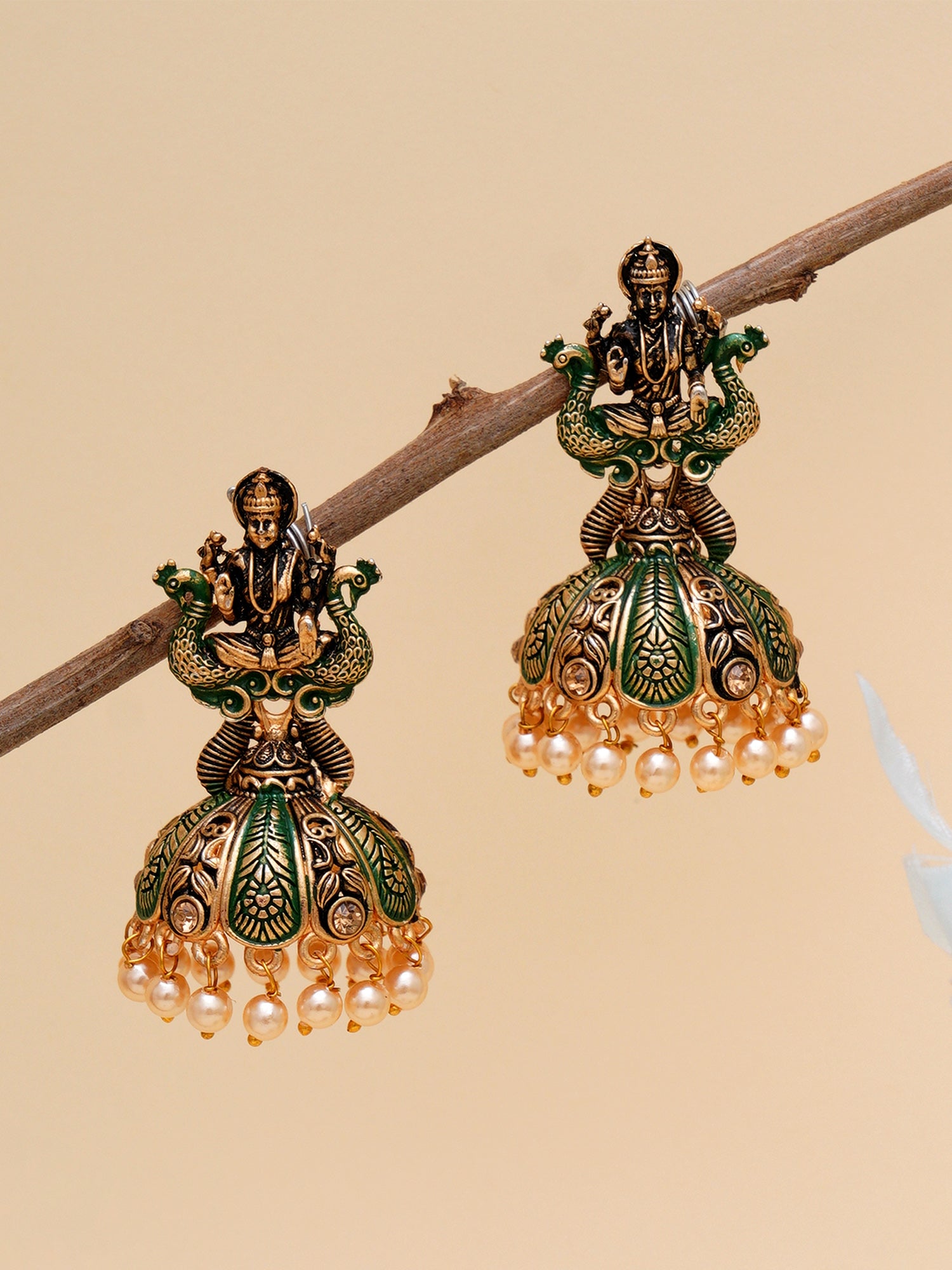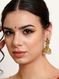 Karatcart Antique Gold Plated Green Mata Laxmi Jhumki Earrings for Women