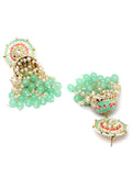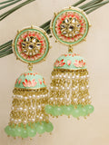 Karatcart Gold Plated Lime Green Meena and Pearl Studded Floral Kundan Jhumki Earrings for Women