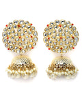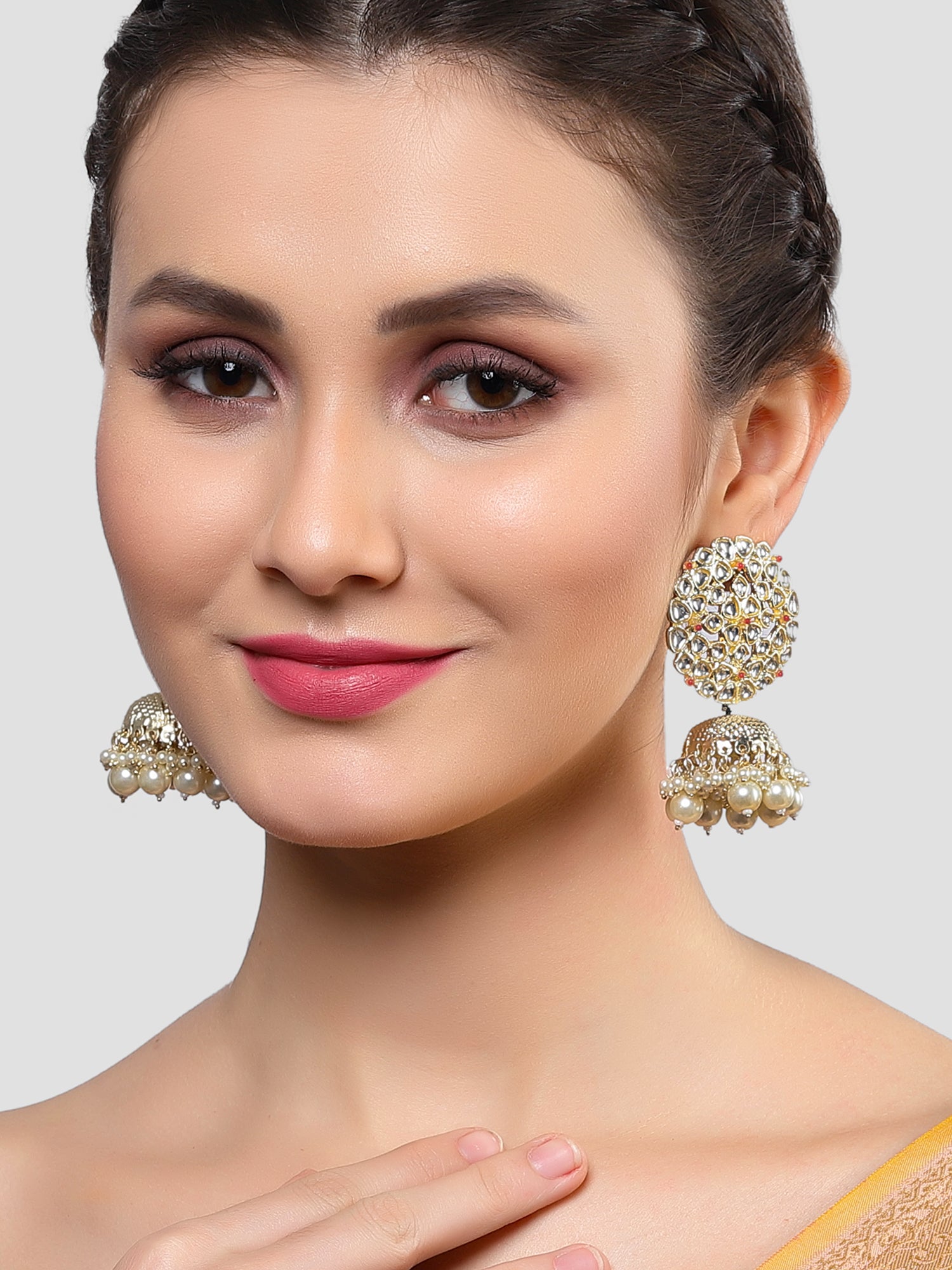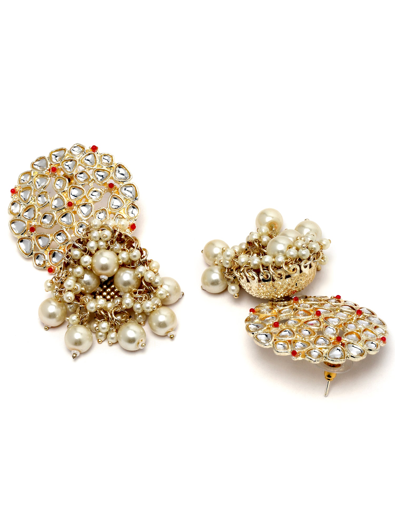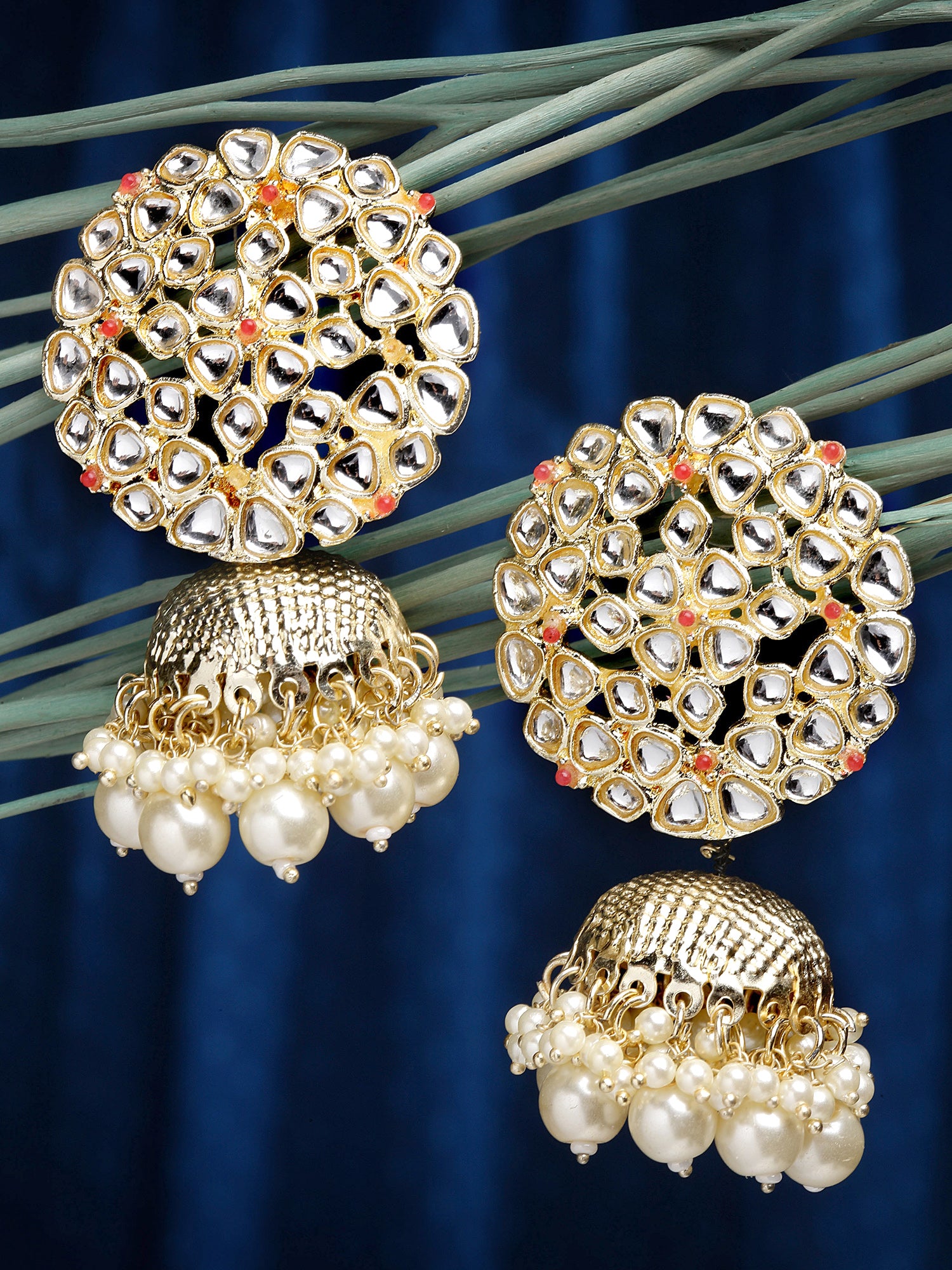 Karatcart Gold Plated Floral Design Pearl Studded Kundan Jhumki Earrings for Women