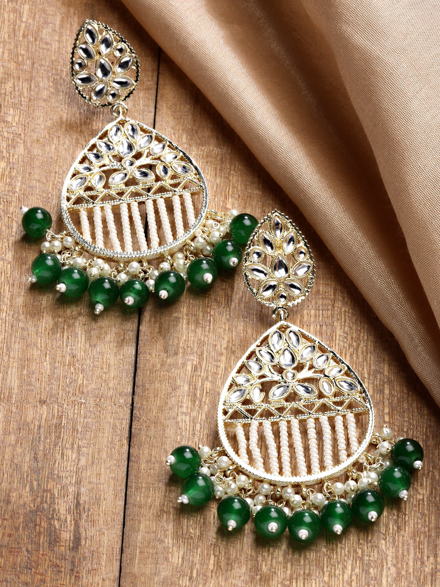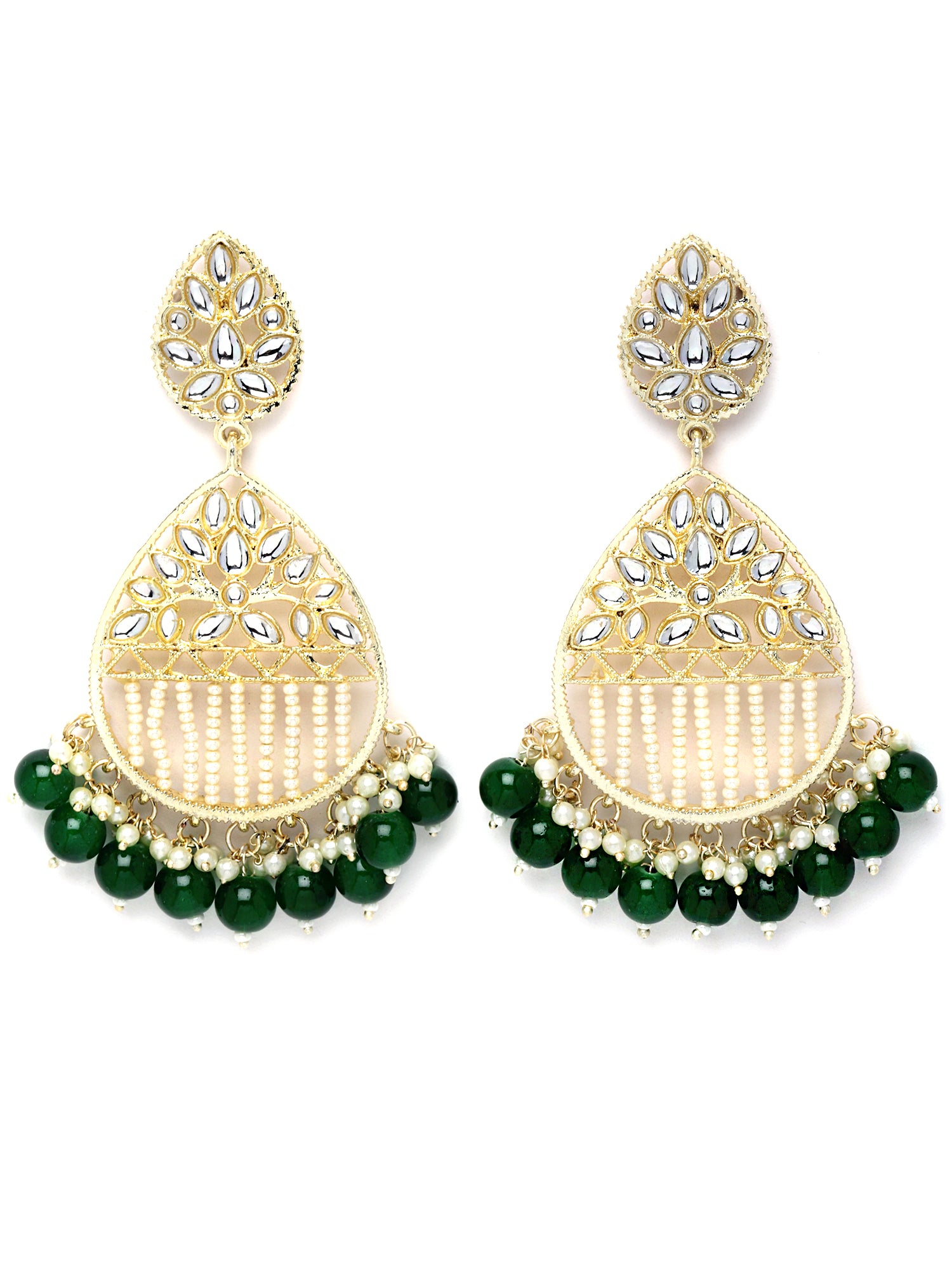 Karatcart Gold Plated Green Beads and Pearl Studded Kundan Dangler Earrings for Women