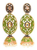 Karatcart Gold Plated Light Green Meena Dangler Jhumki Earrings for Women