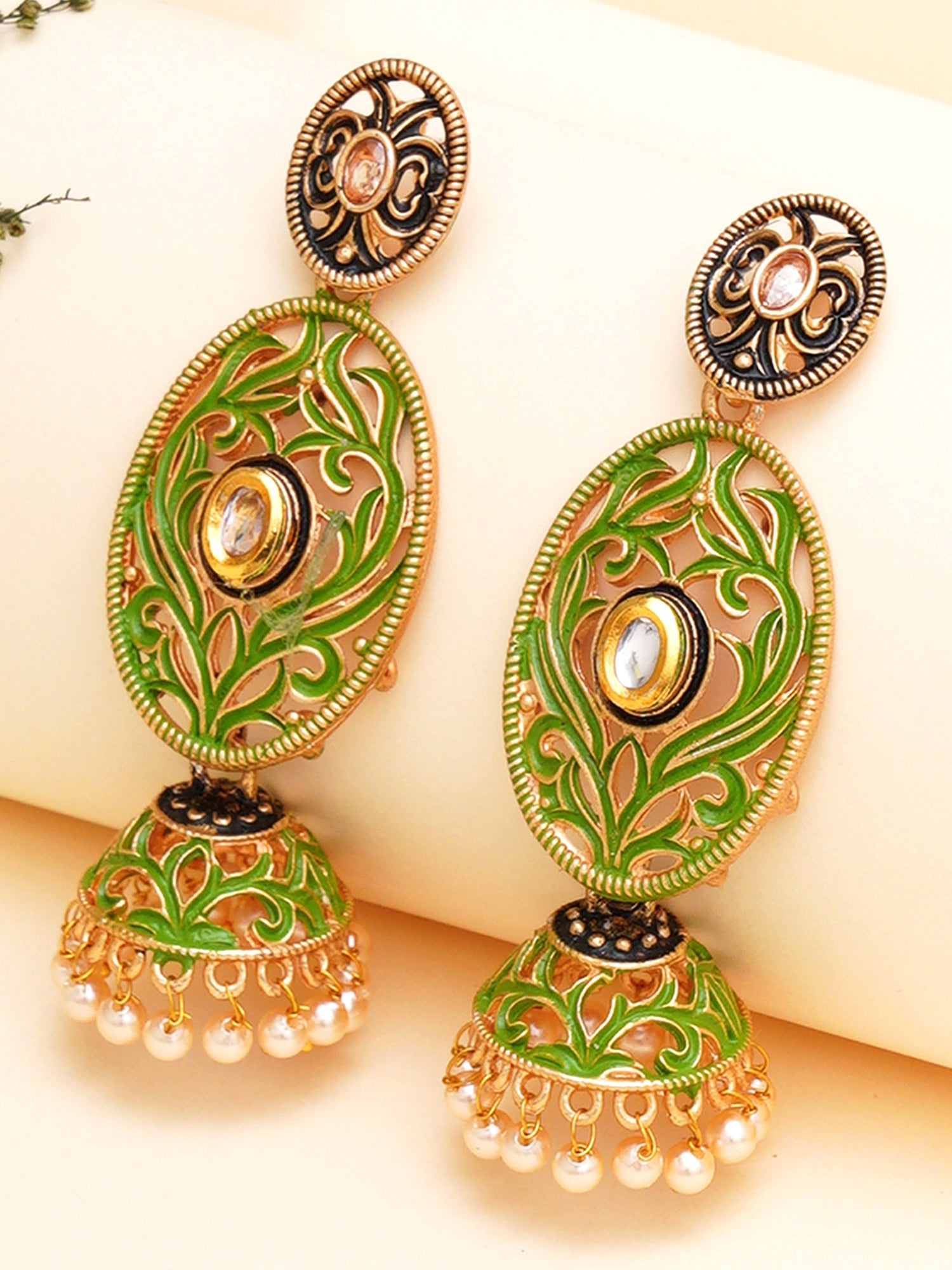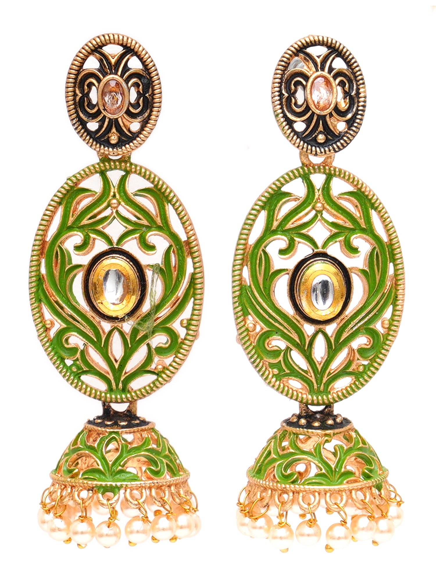 - This is a Light Green Earrings by Brand Karatcart which has Enamel stones.This is Gold Plated. We at KARATCART understand your desire to look the best on any day & we thrive in making any day an occasion. Every individual at Karatcart carries a passion for jewellery and it reflects in our beautiful designs as well as in our breathtaking craftsmanship. We create unique jewellery so you can make heads turn..