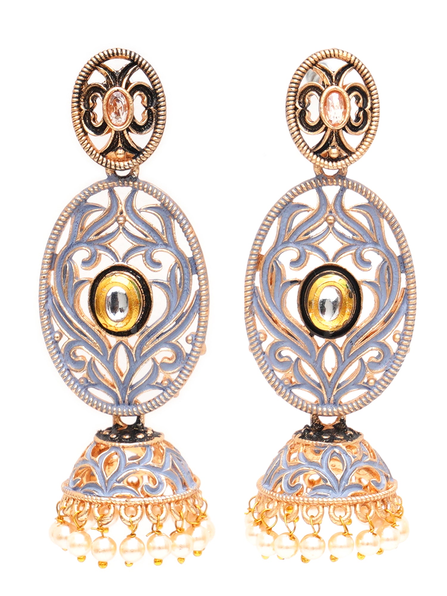 Karatcart Gold Plated Grey Meena Dangler Jhumki Earrings for Women