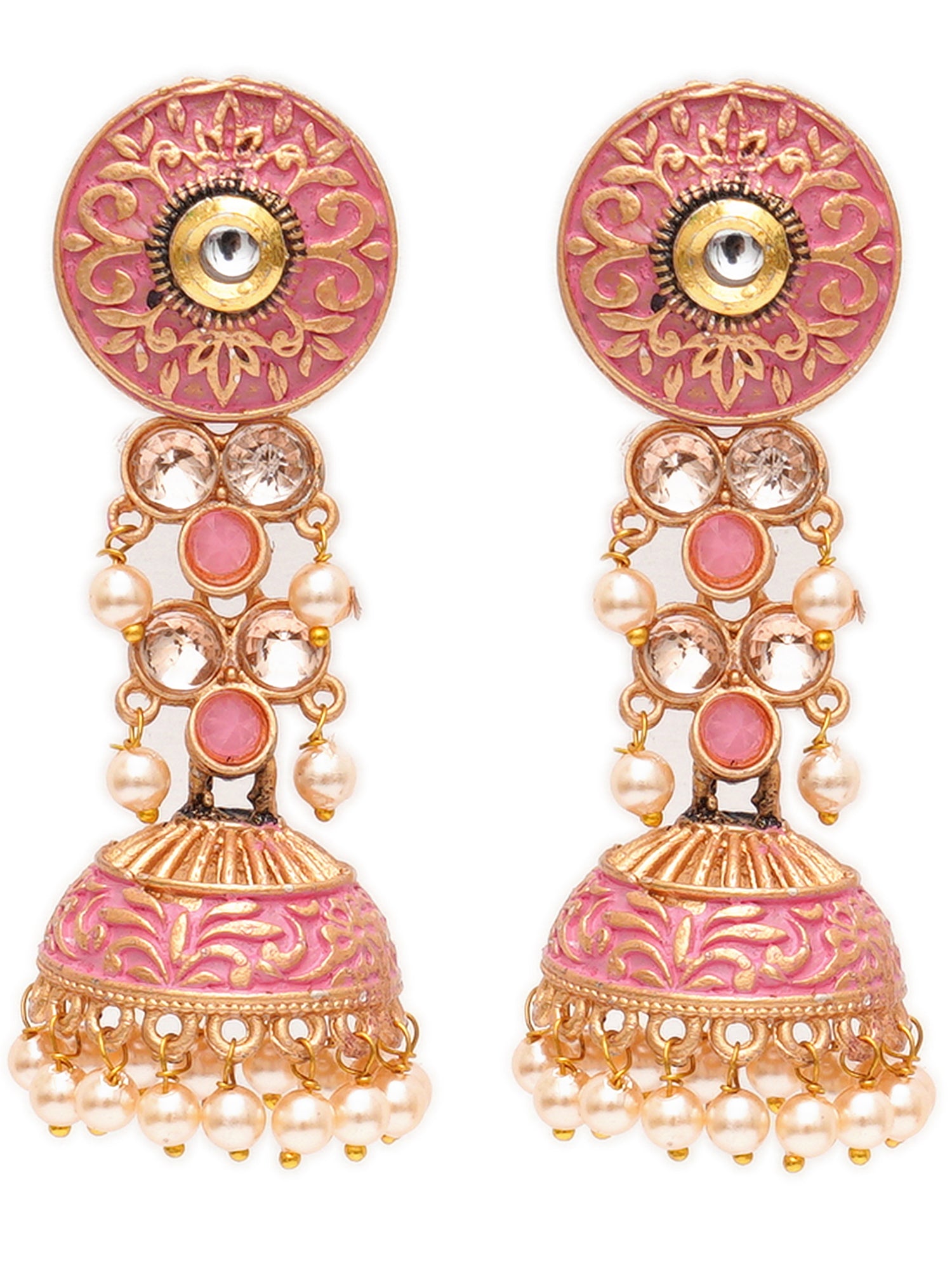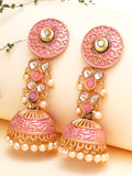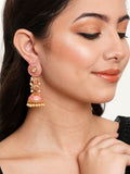 Karatcart Gold Plated Pink Meena and Pearl Studded Jhumki Earrings for Women