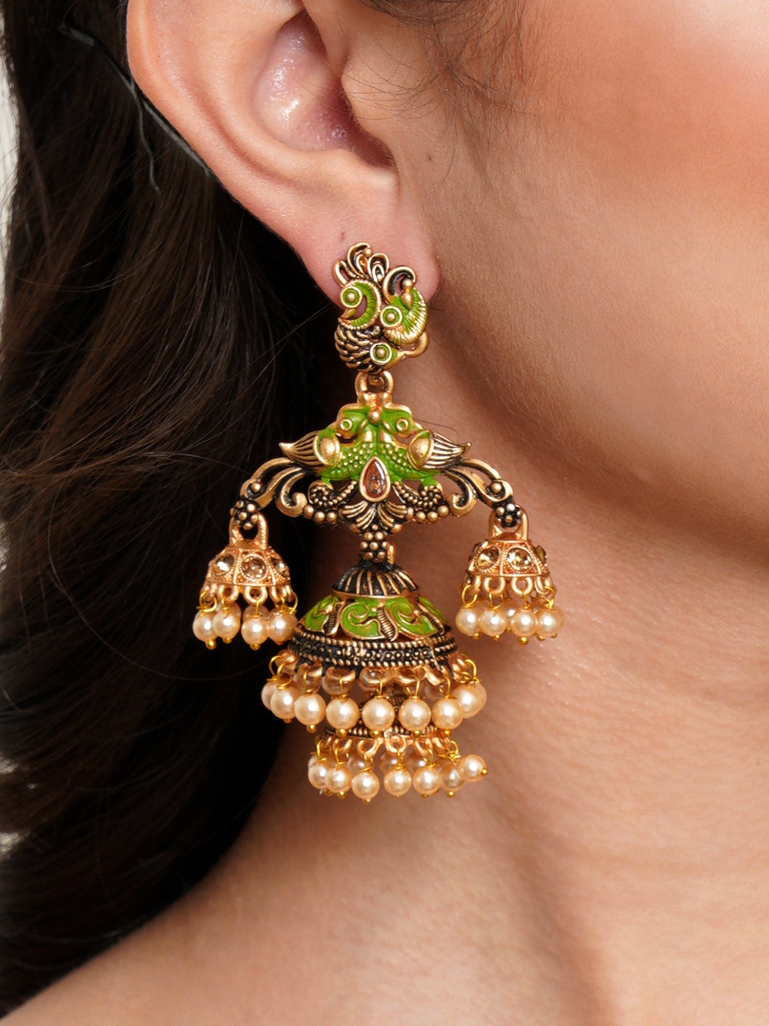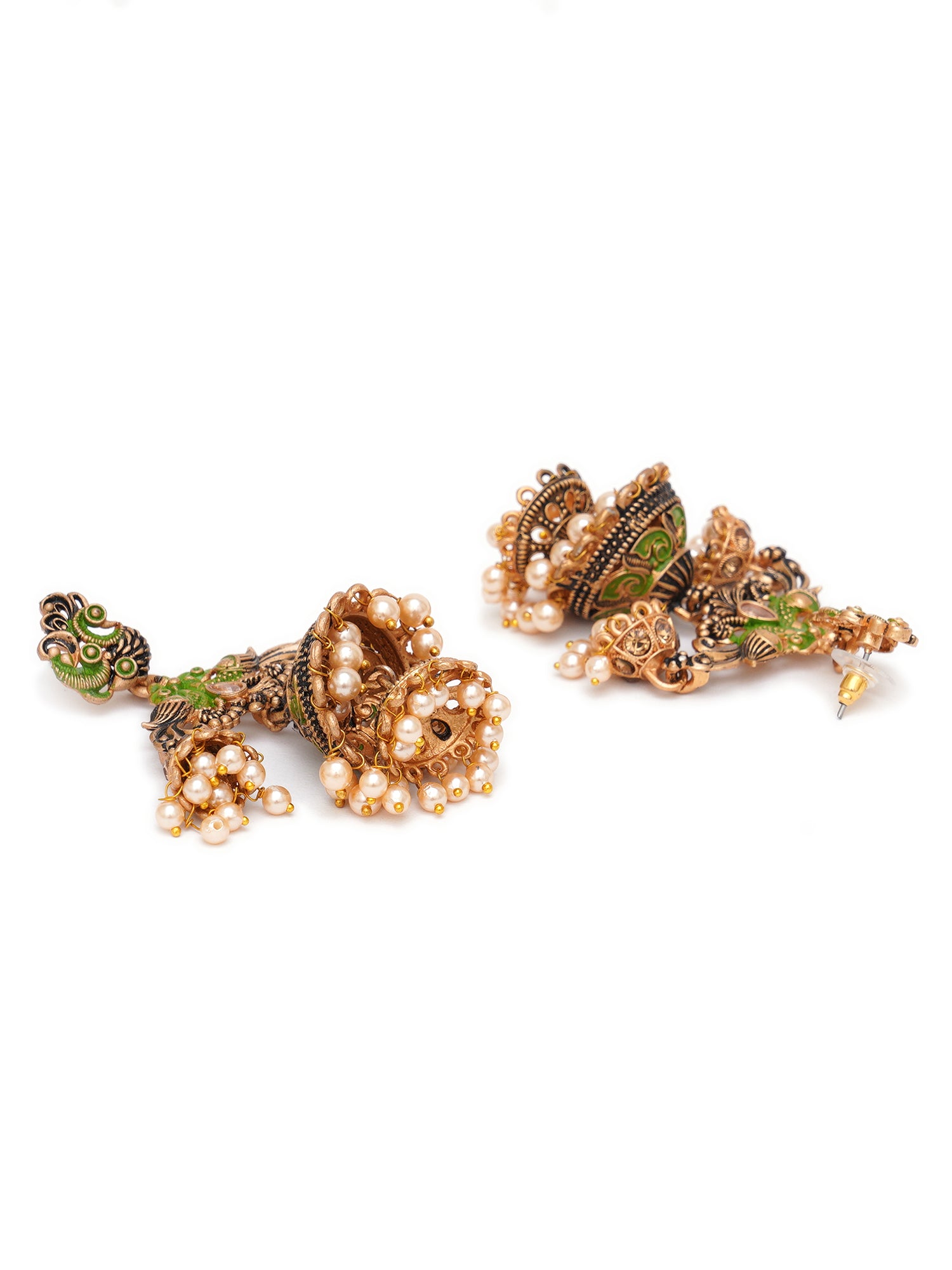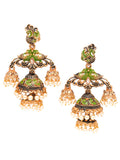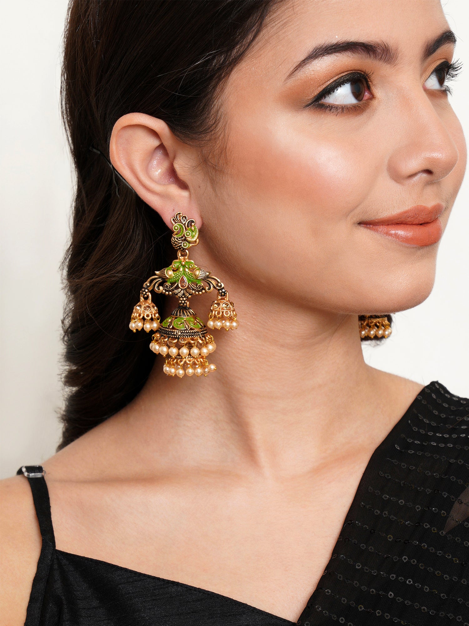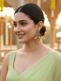 Karatcart Gold Plated Light Green Meena Double Jhumki Earrings for Women