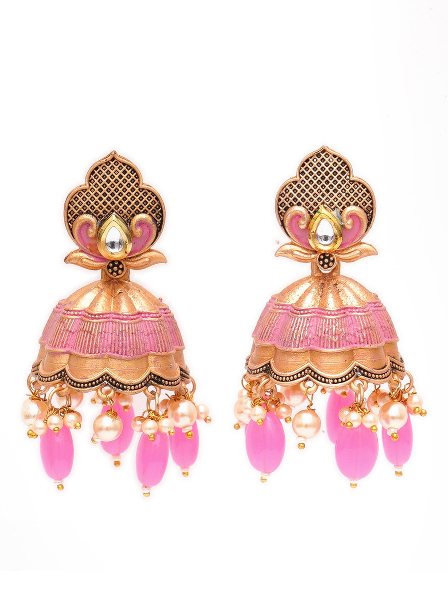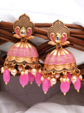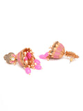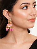 Karatcart Gold Plated Pink Tumble and Golden Pearl Studded Jhumki Earrings for Women