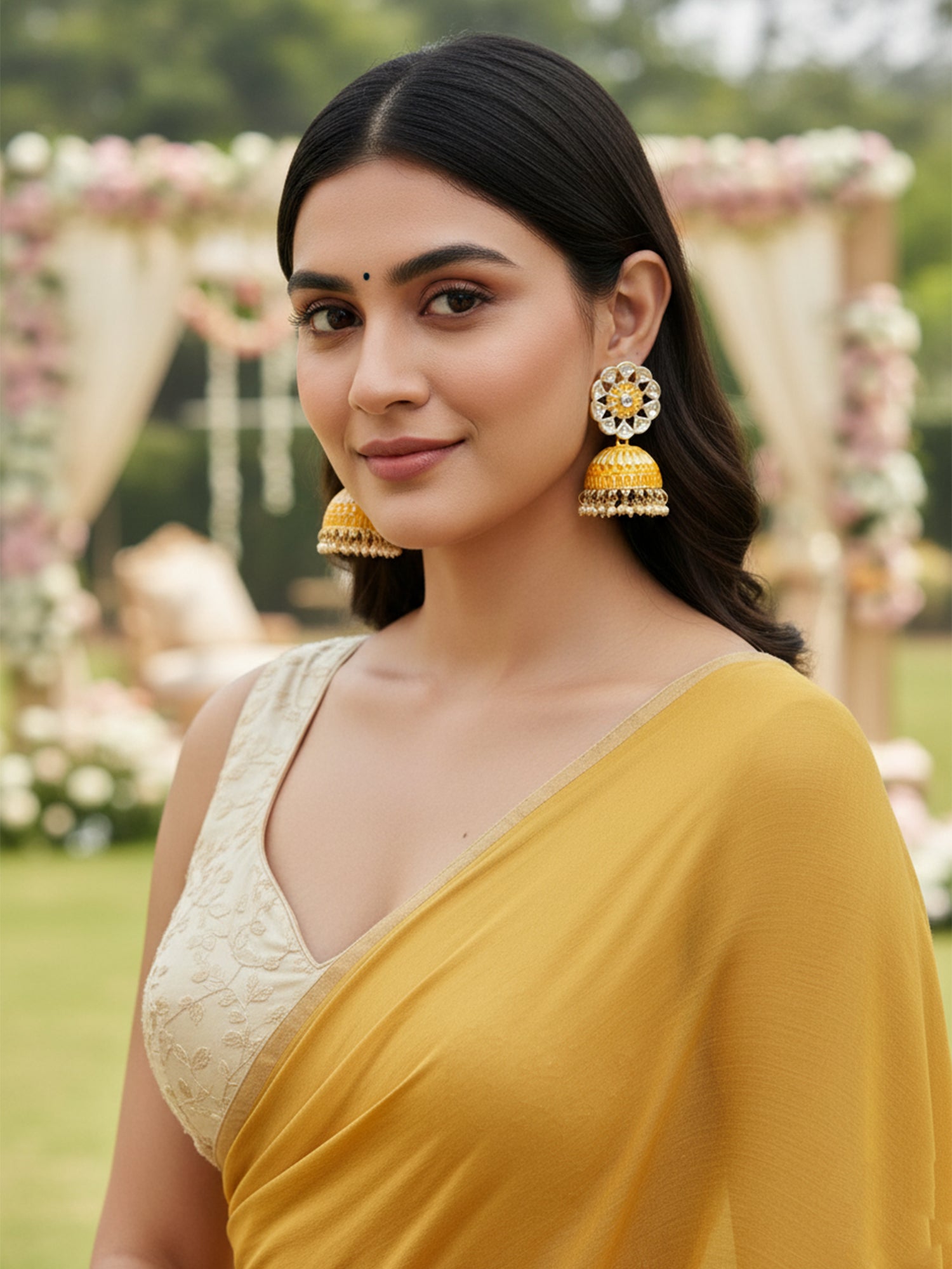 - This is a Yellow Earrings by Brand Karatcart which has Enamel stones.This is Gold Plated. We at KARATCART understand your desire to look the best on any day & we thrive in making any day an occasion. Every individual at Karatcart carries a passion for jewellery and it reflects in our beautiful designs as well as in our breathtaking craftsmanship. We create unique jewellery so you can make heads turn..