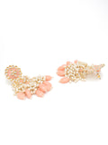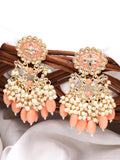 Karatcart Gold Plated Kundan Studded Peach Meena and Tumble Dangler Earrings for Women