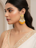 Karatcart Gold Plated Kundan Studded Yellow Meena and Tumble Dangler Earrings for Women