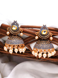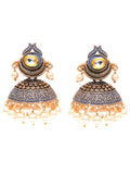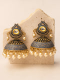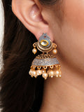Karatcart Antique Gold Plated Polki Kundan Studded Grey Meena Jhumki Earrings for Women