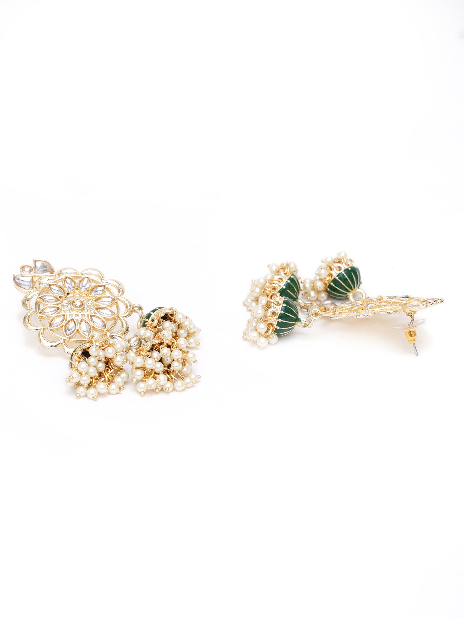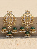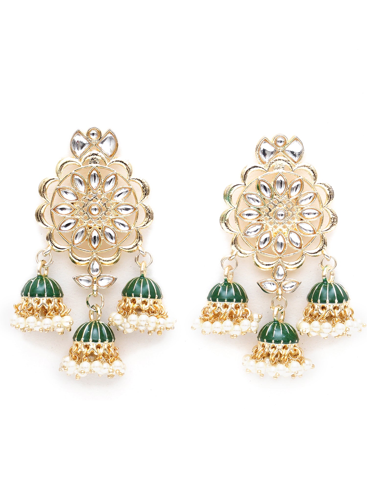 Karatcart Gold Plated Kundan Studded Green Meena Triple Jhumki Earrings for Women