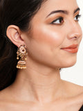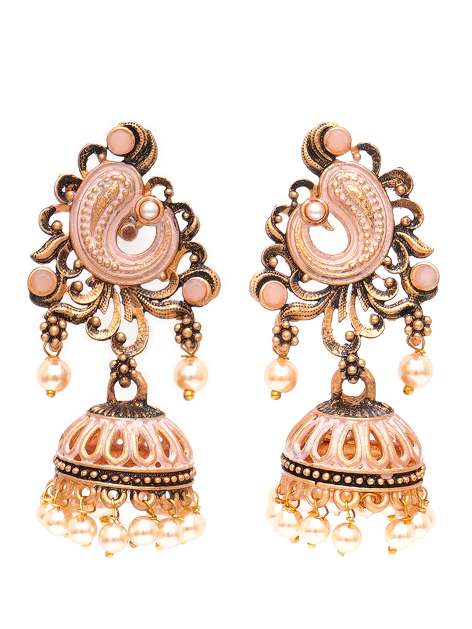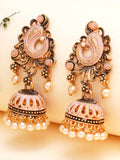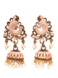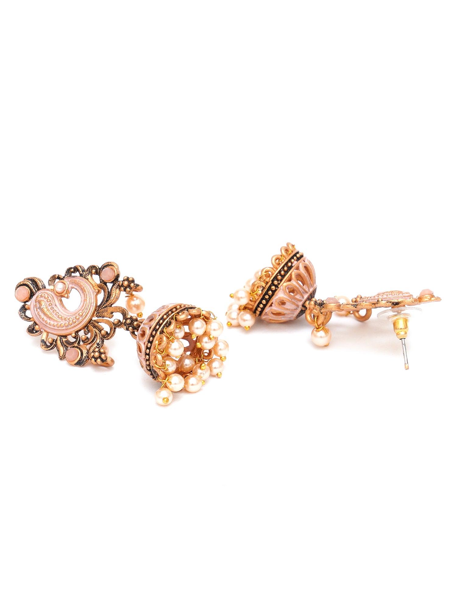 Karatcart Antique Gold Plated Peach Stone with Meena Jhumki Earrings for Women