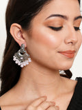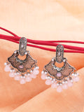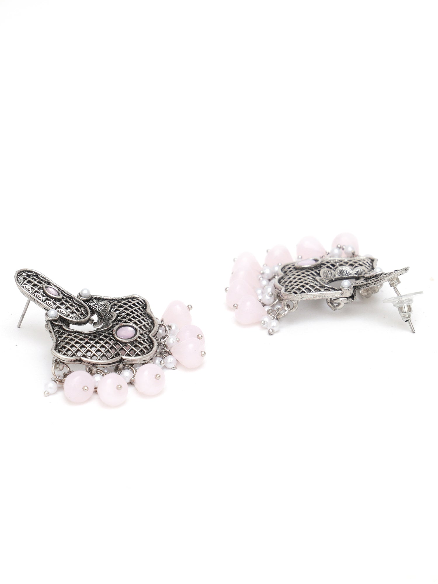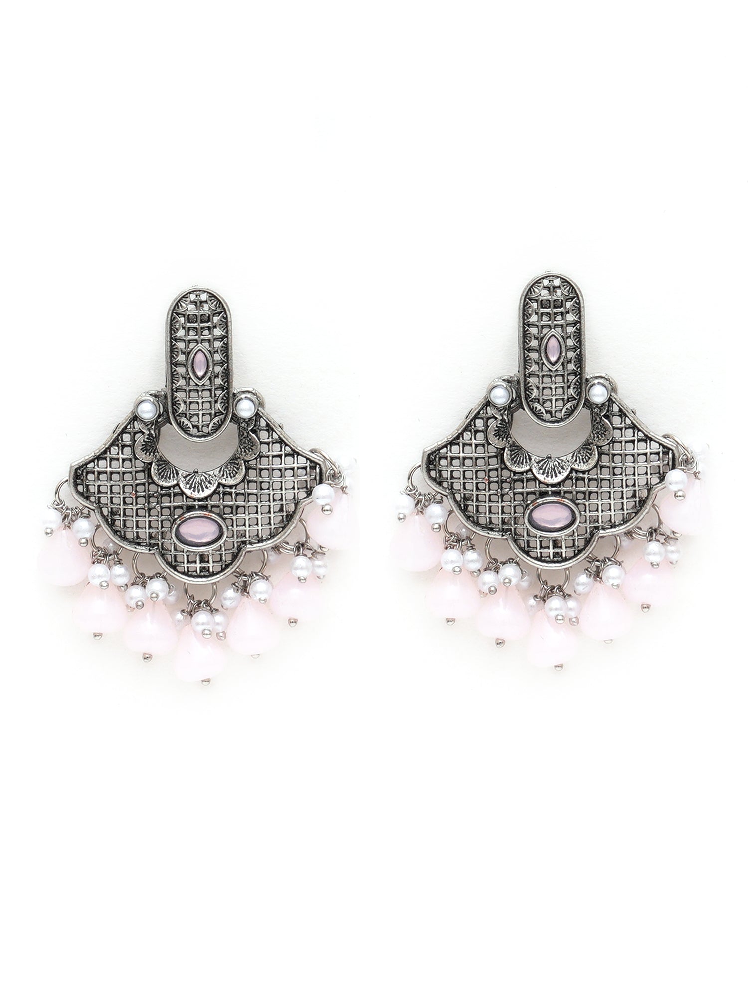 Karatcart Oxidised Silver Pink Monalisa Stone and Pearl Studded Dangler Earrings for Women