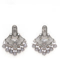 Karatcart Oxidised Silver Grey Monalisa Stone and Pearl Studded Dangler Earrings for Women