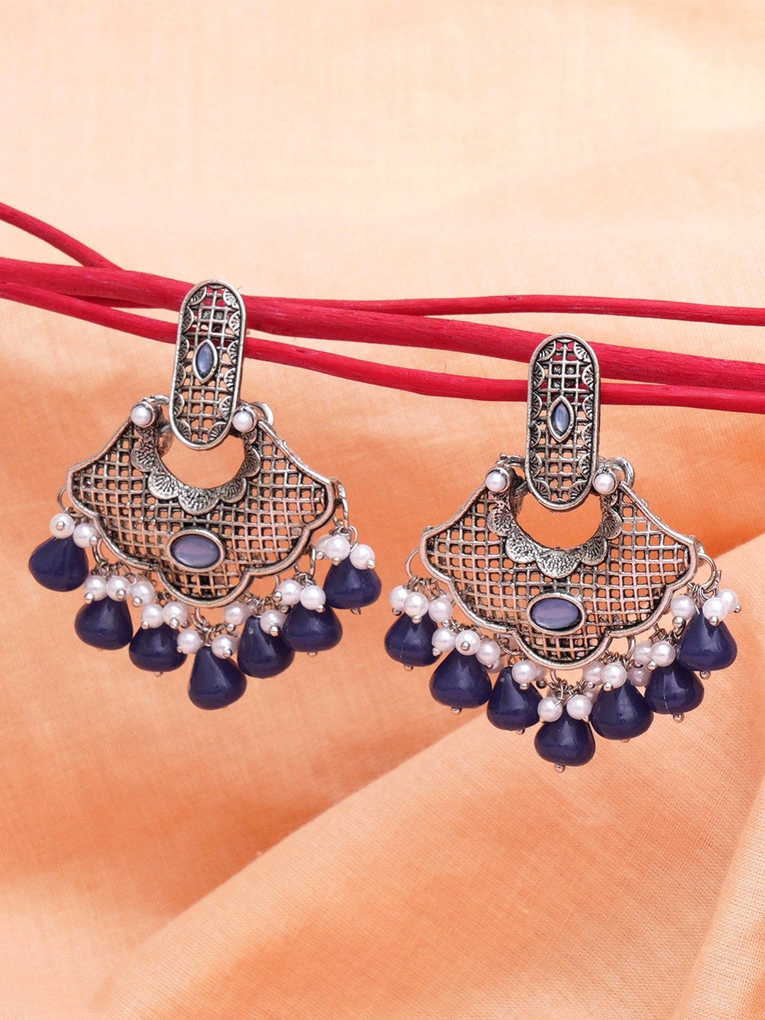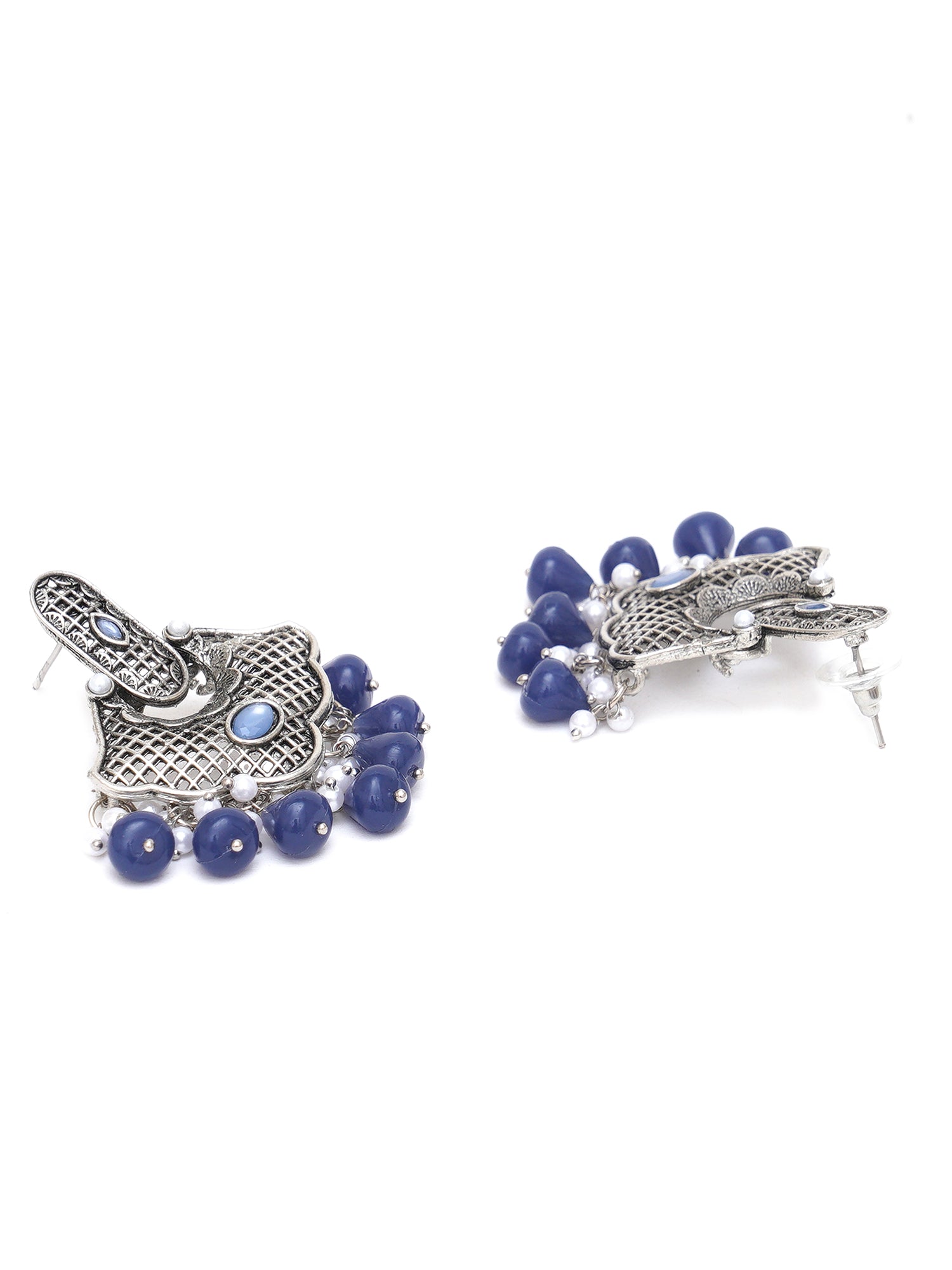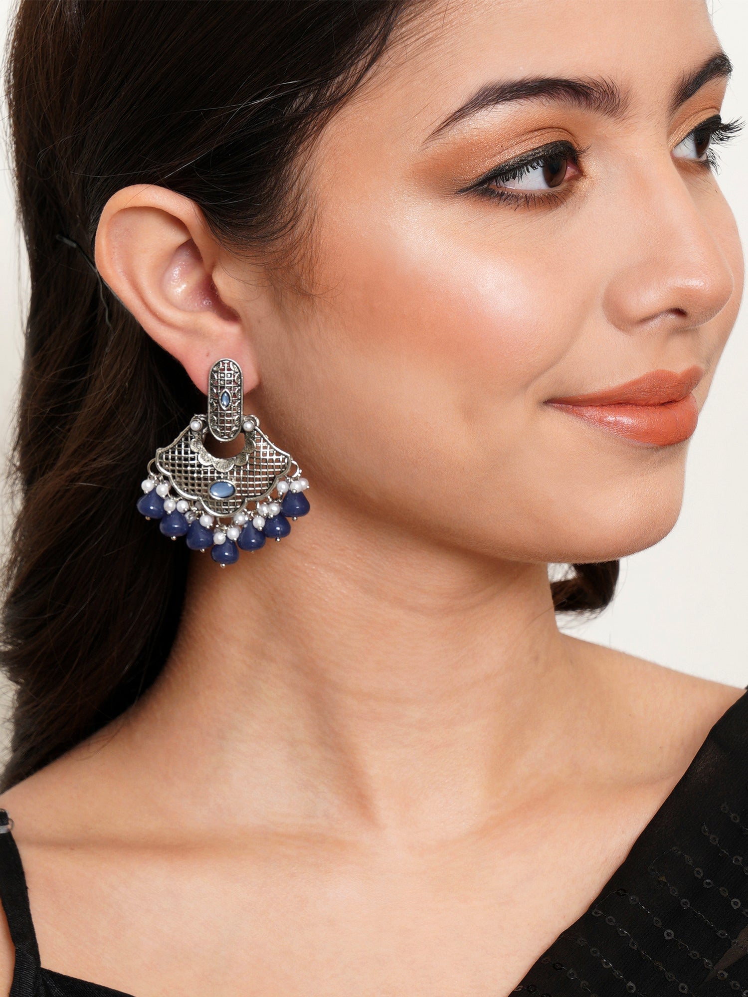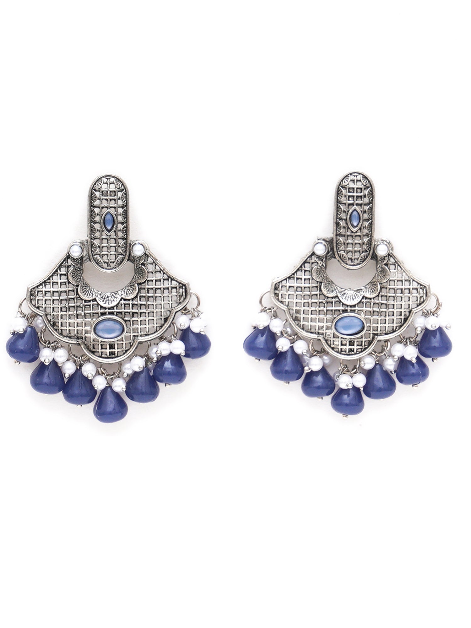 Karatcart Oxidised Silver Blue Monalisa Stone and Pearl Studded Dangler Earrings for Women
