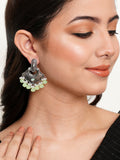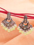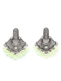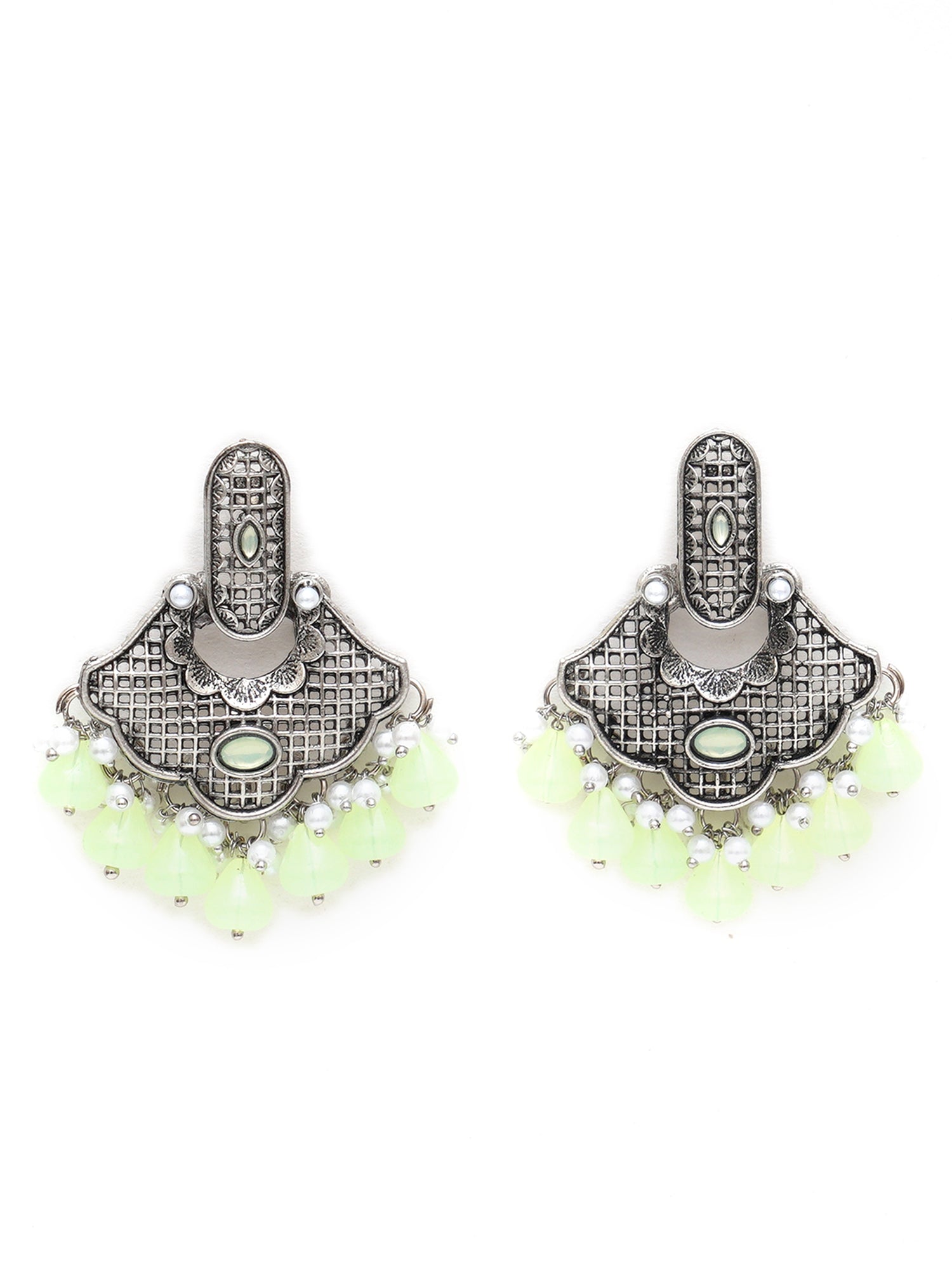 Karatcart Oxidised Silver Light Green Monalisa Stone and Pearl Studded Dangler Earrings for Women