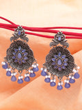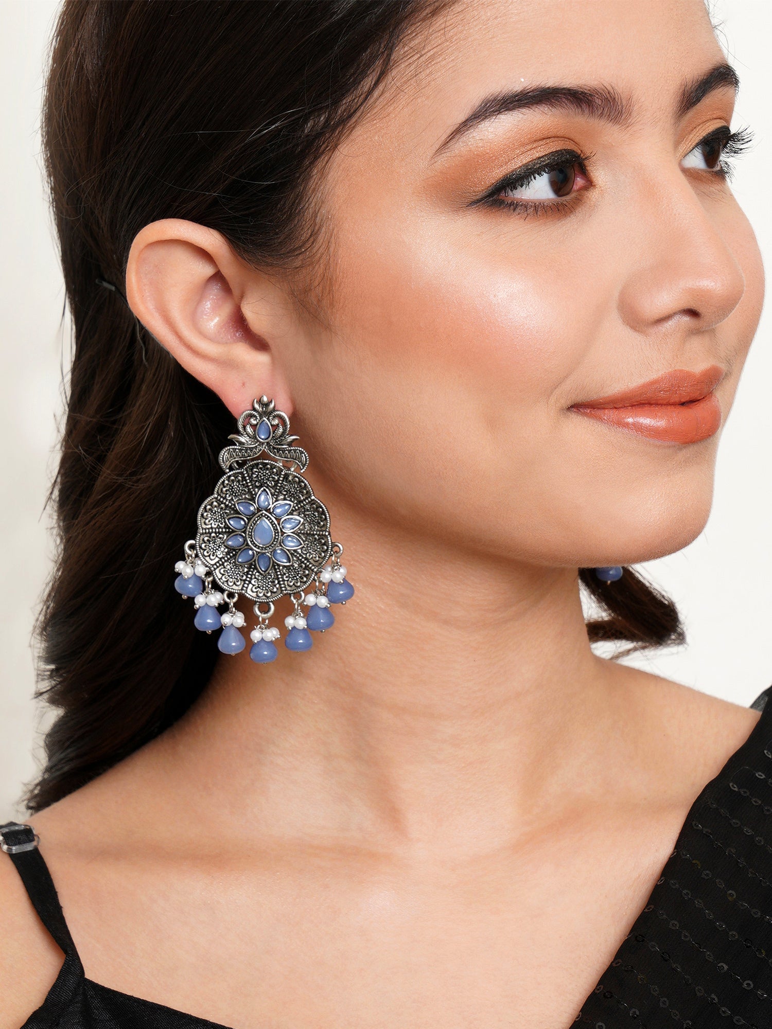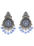 Karatcart Oxidised Silver Blue Monalisa Stone Studded Floral Dangler Earrings for Women