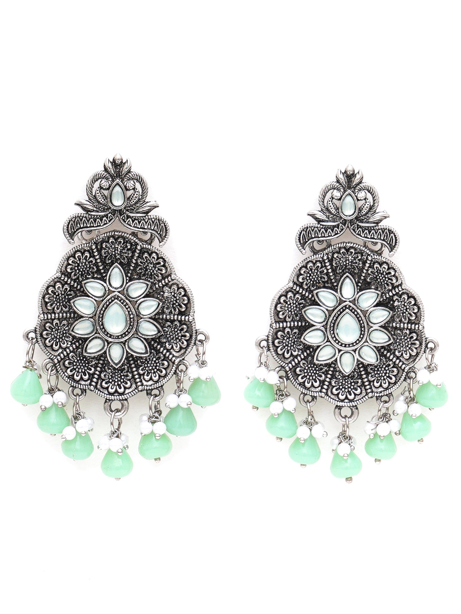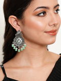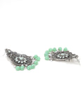 Karatcart Oxidised Silver Light Green Monalisa Stone Studded Floral Dangler Earrings for Women