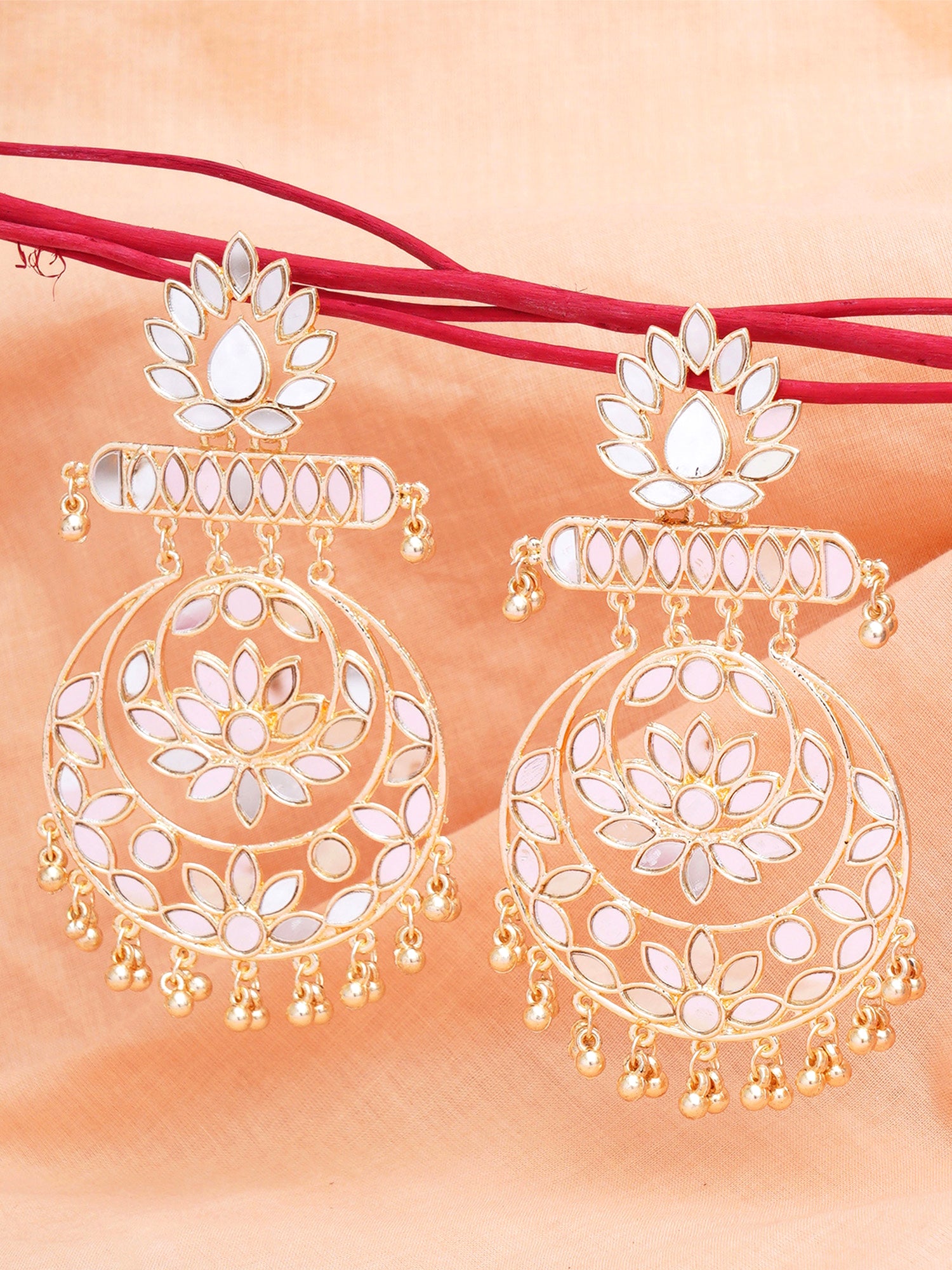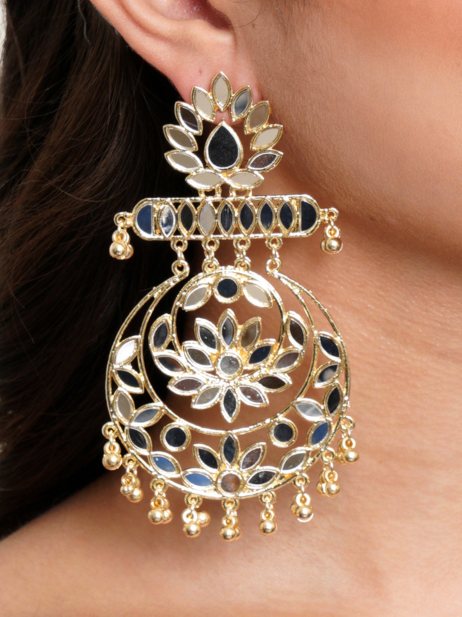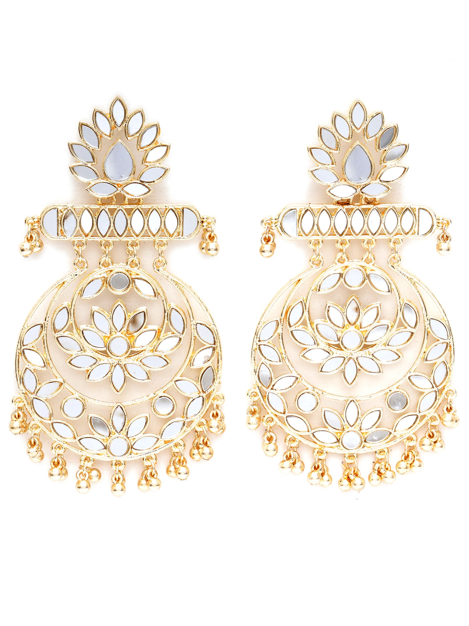 Karatcart Gold Plated Floral Design Mirror Work Long Dangler Earrings for Women