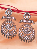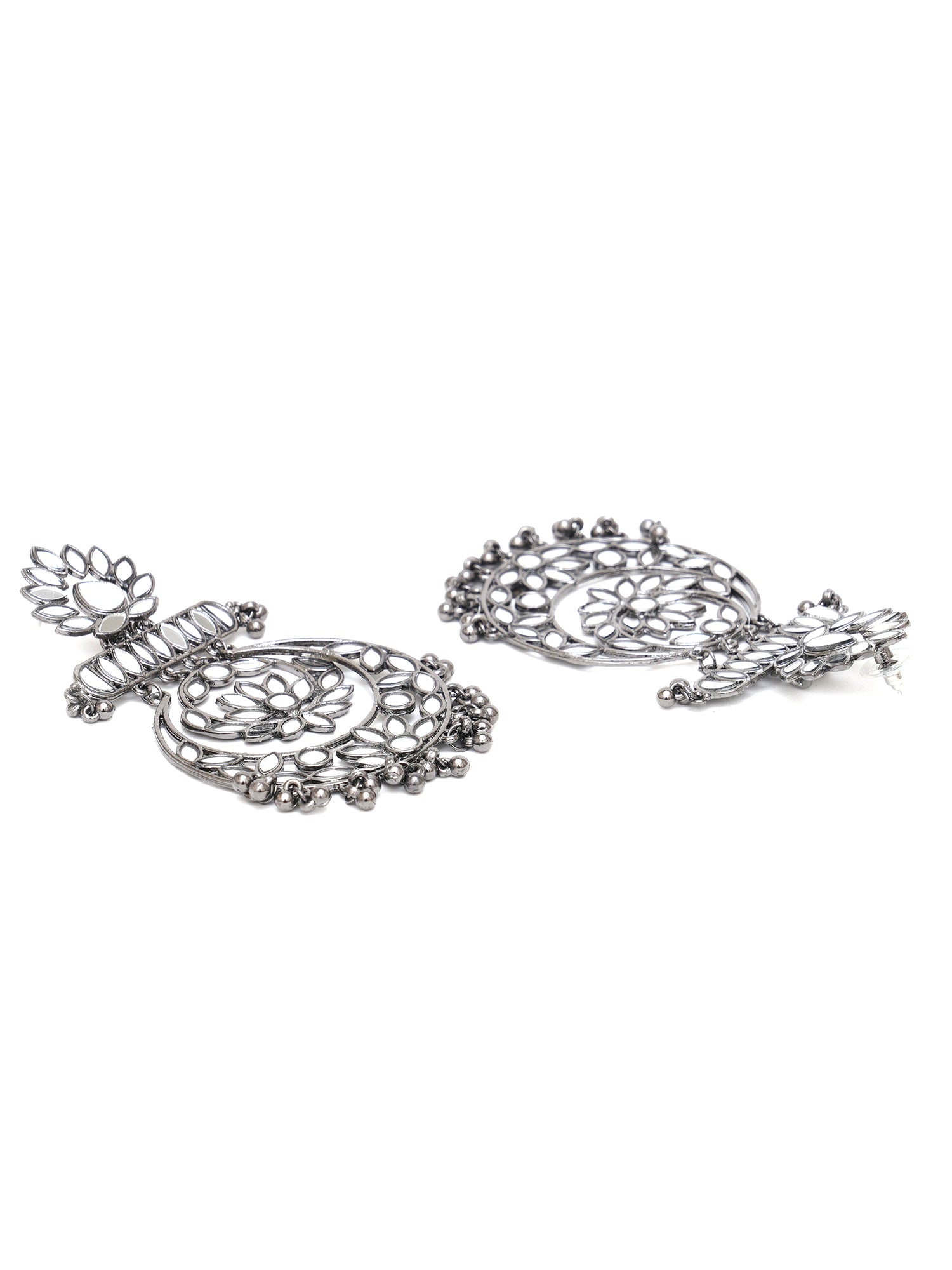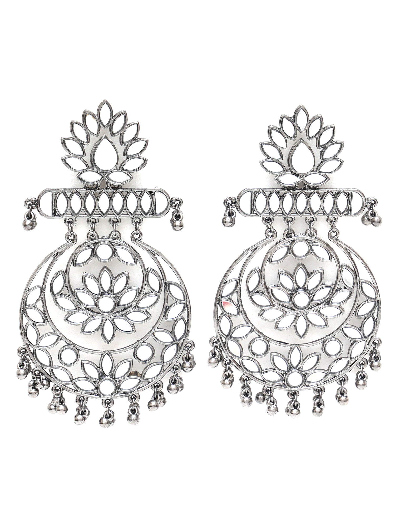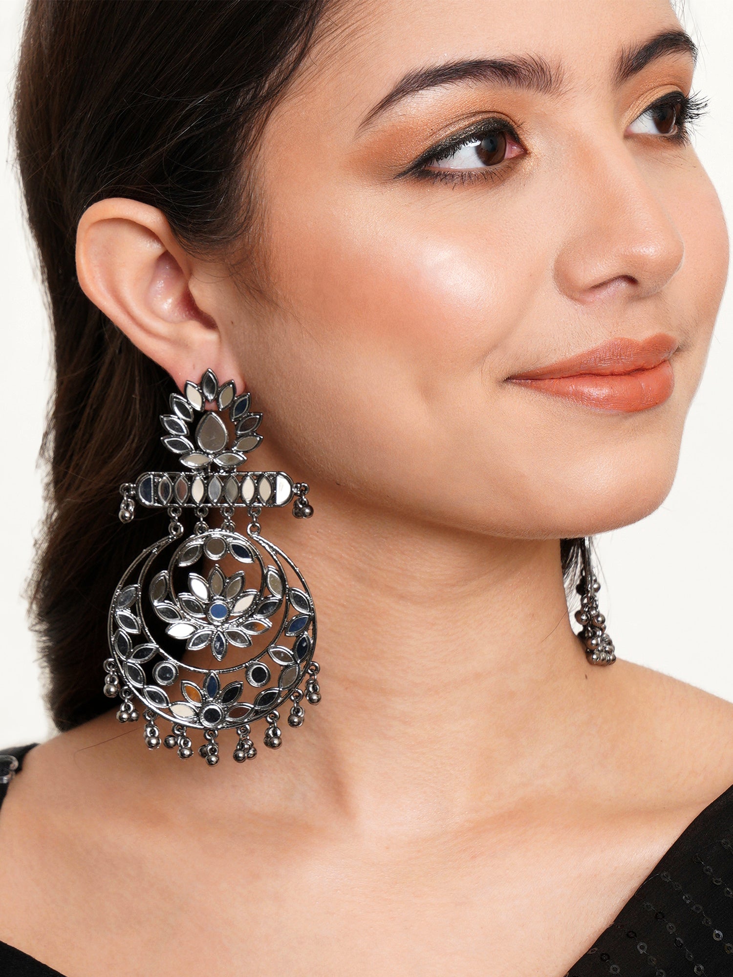 Karatcart Black Silver Plated Floral Design Mirror Work Long Dangler Earrings for Women
