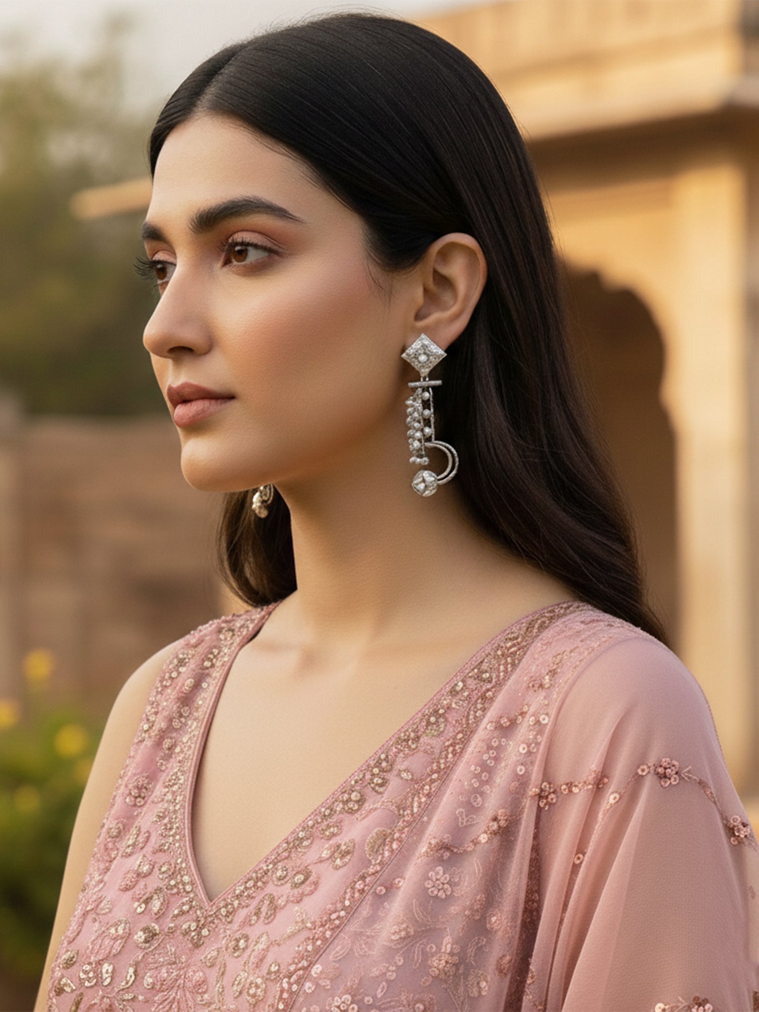- Dimensions: Earring Length: 7.6 cm, Width: 2.7 cm