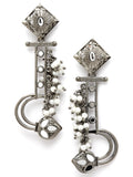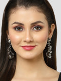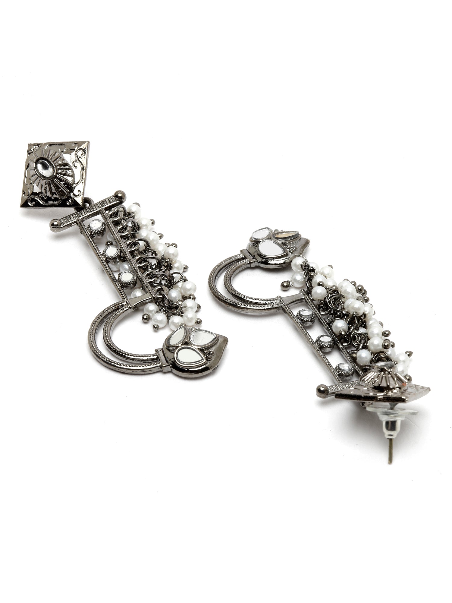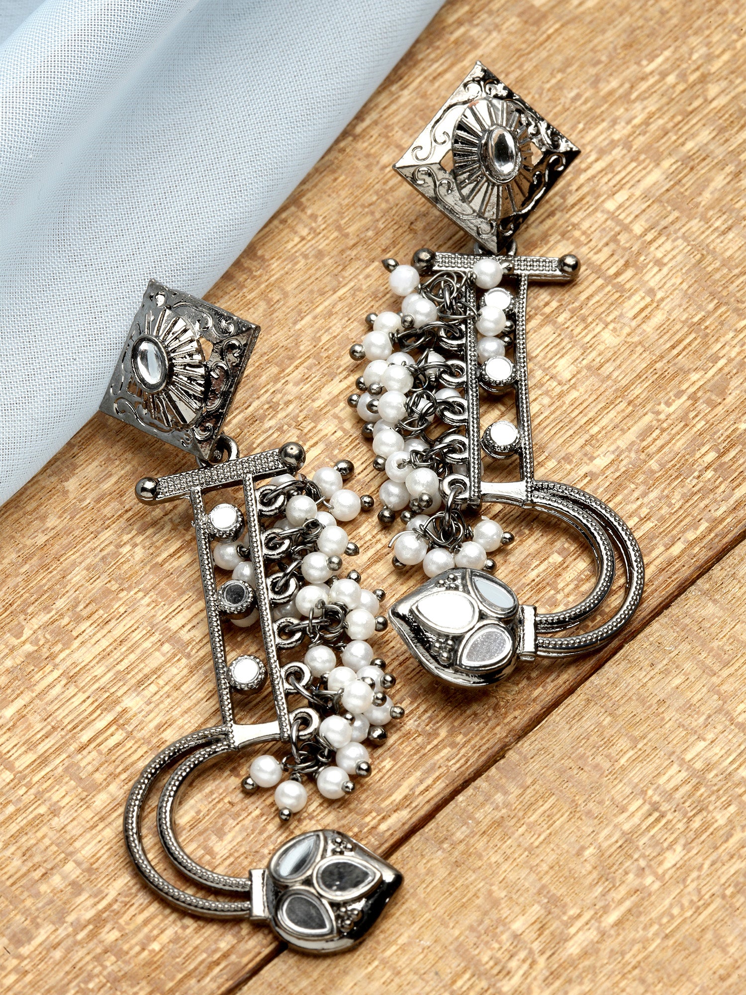 Karatcart Black Silver Plated Mirror Studded Pearl Dangler Earrings for Women