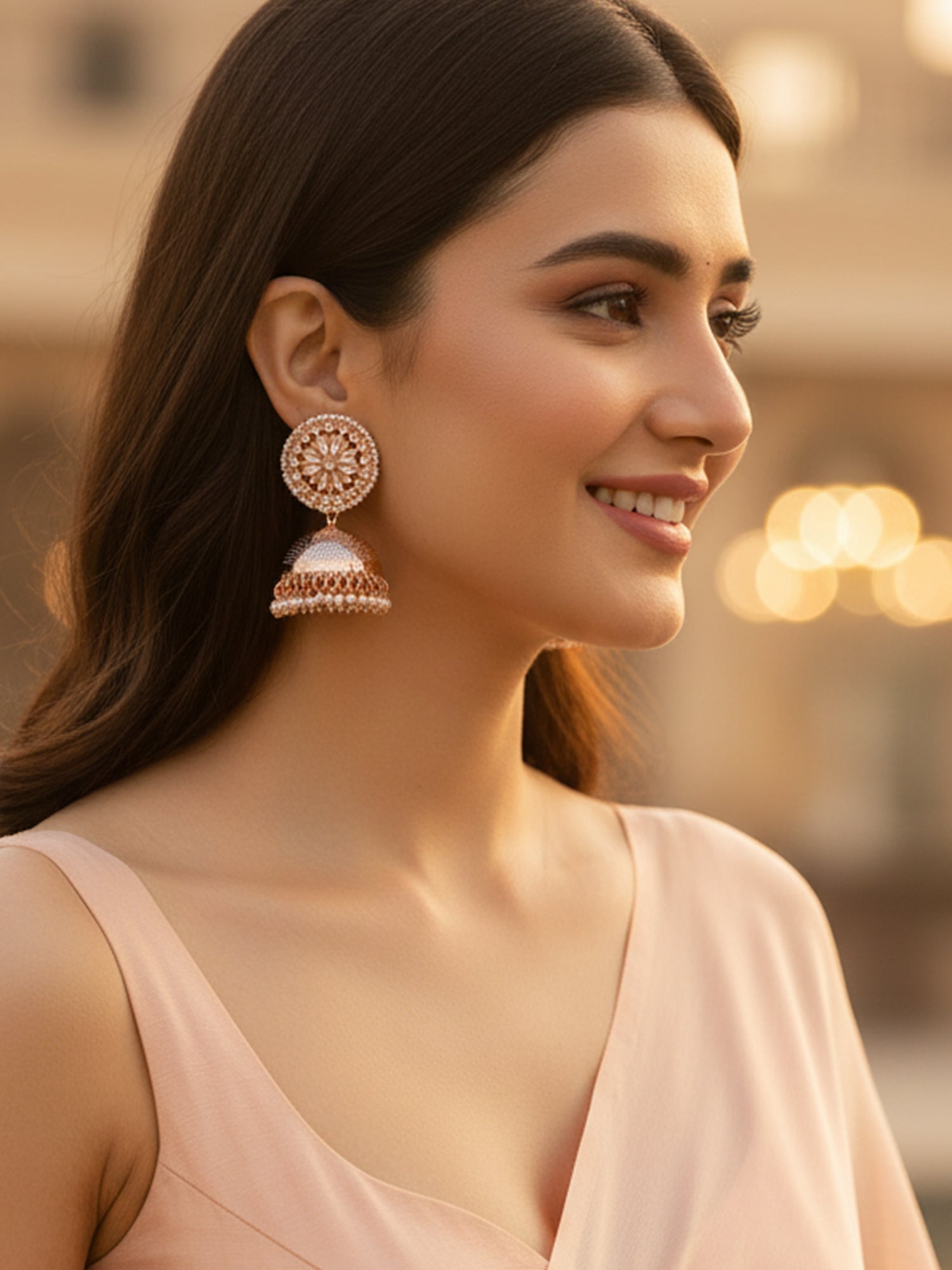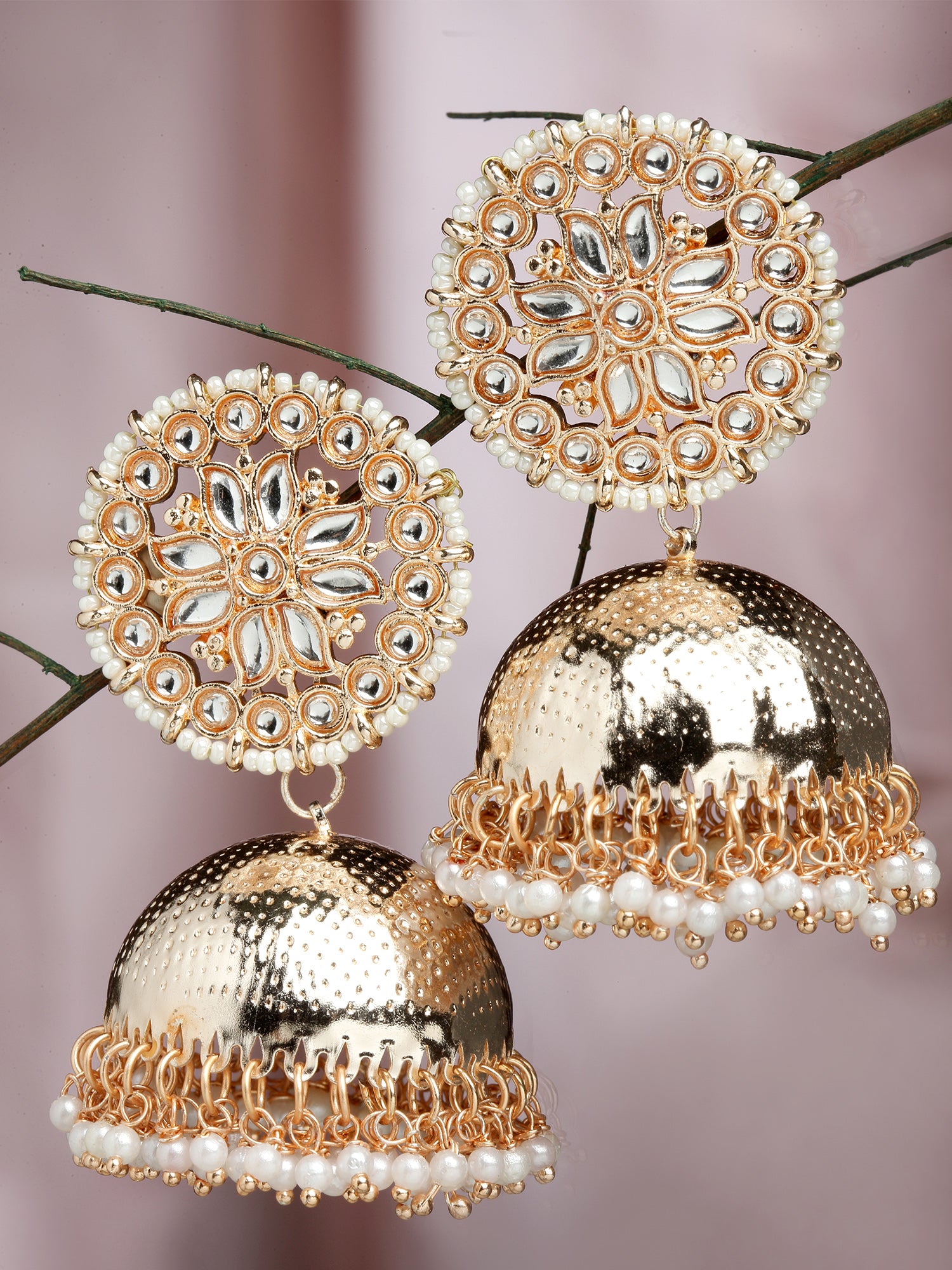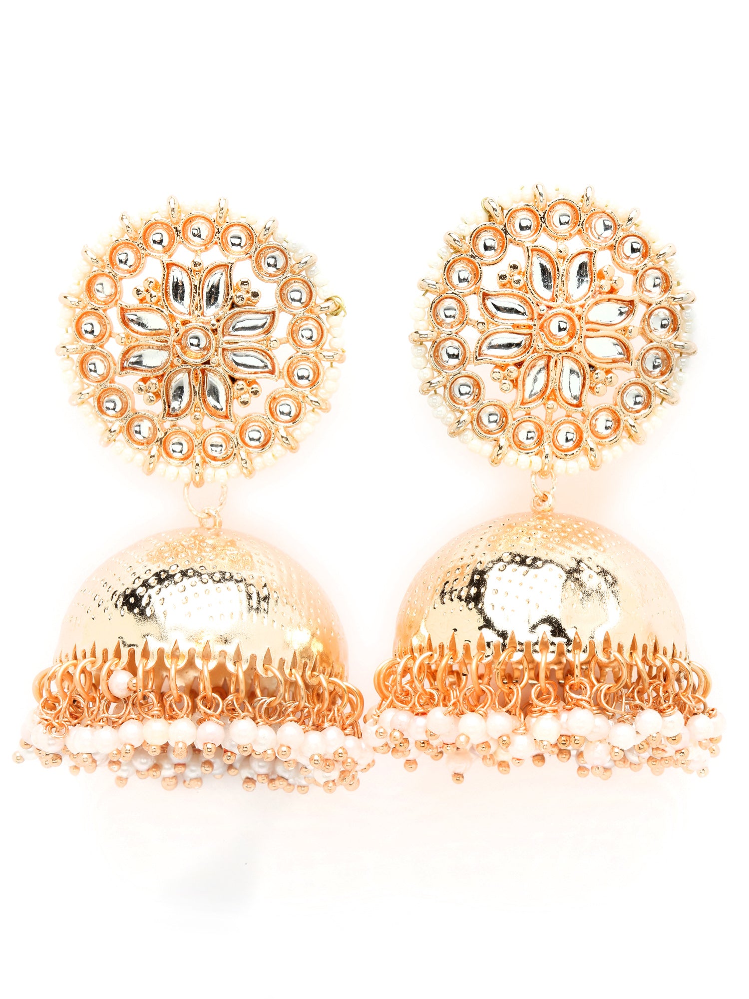Karatcart Rose Gold Plated Kundan Studded Jhumki Earrings for Women