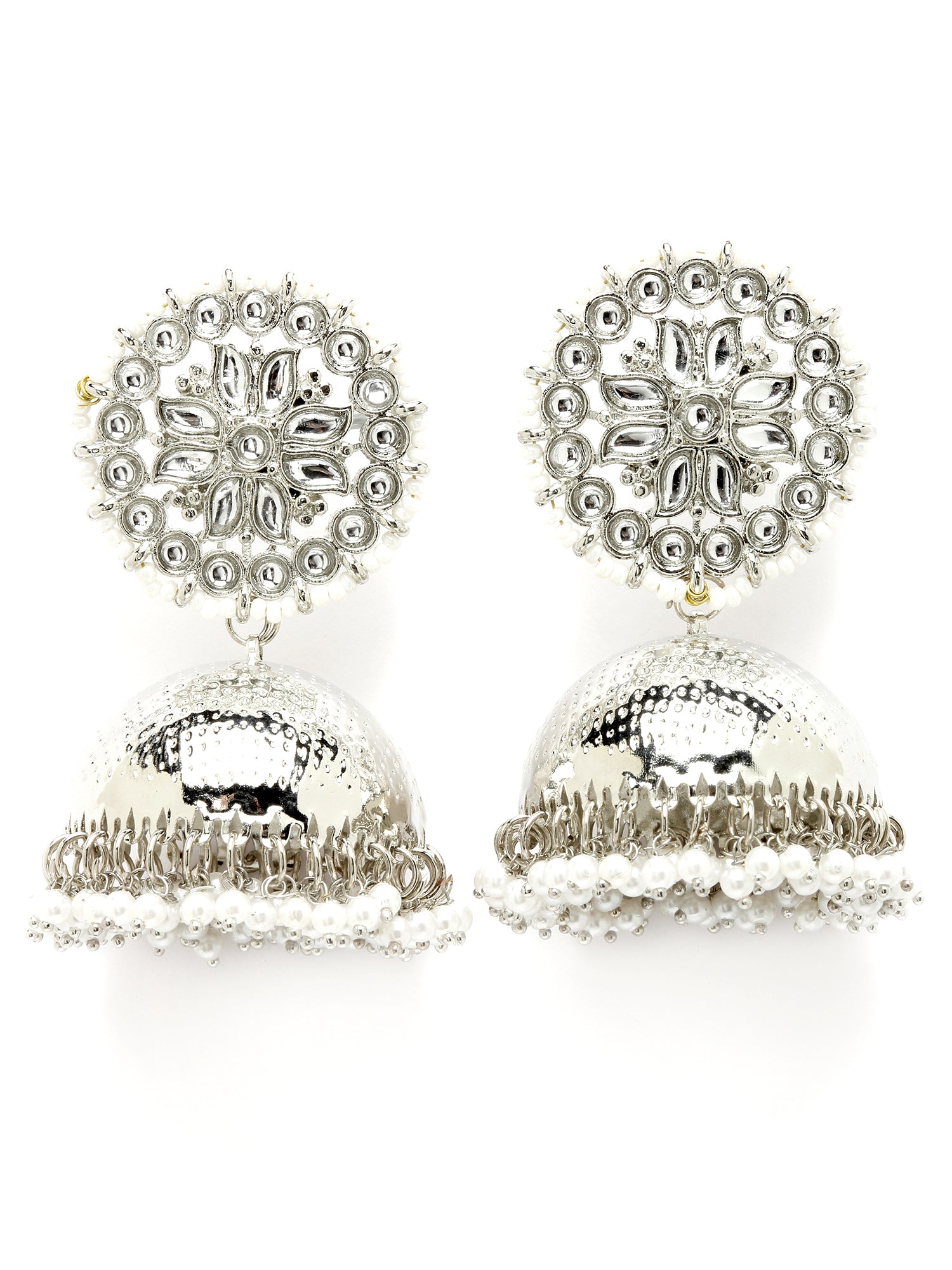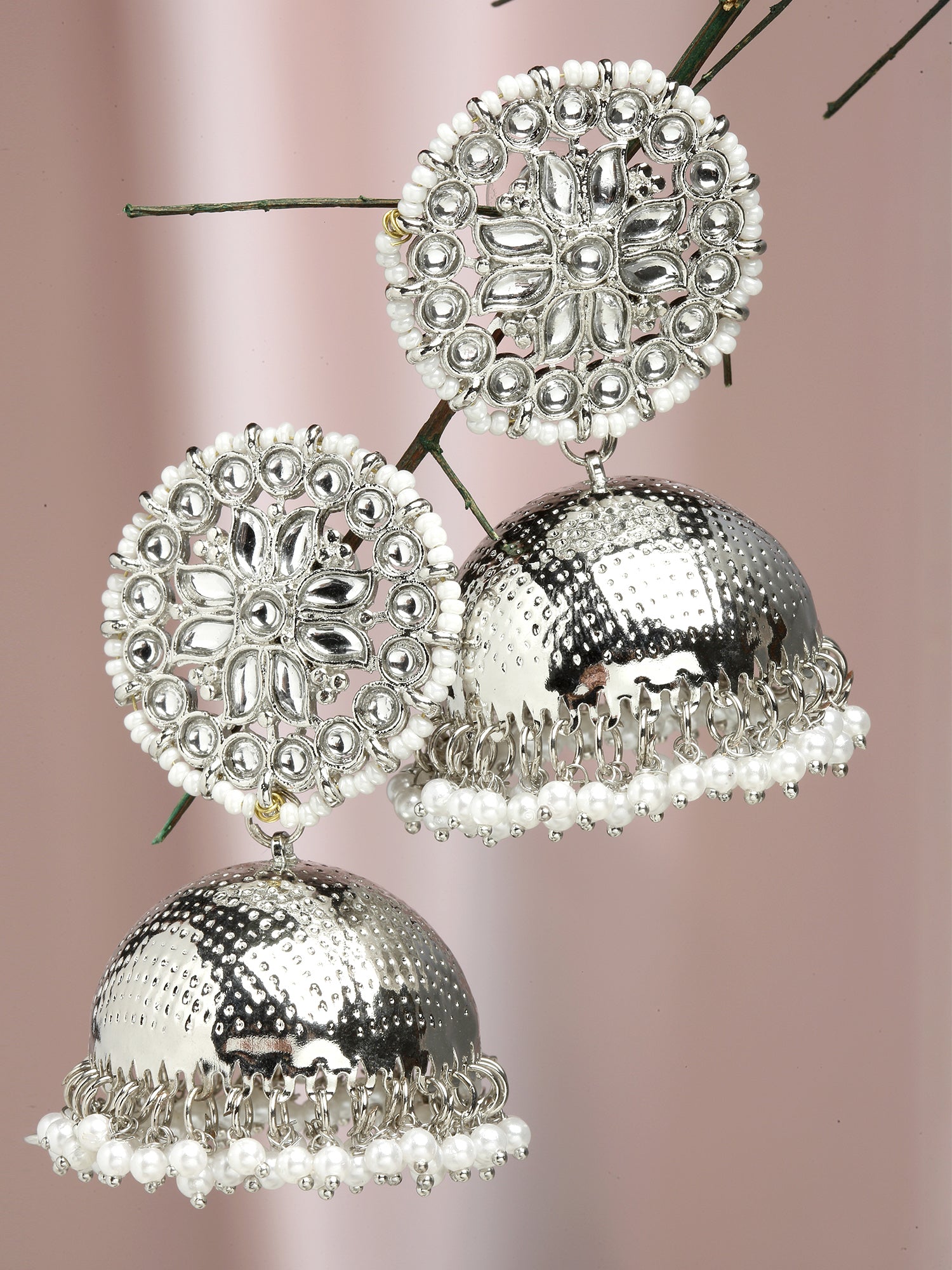 Karatcart Silver Plated Kundan Studded Jhumki Earrings for Women
